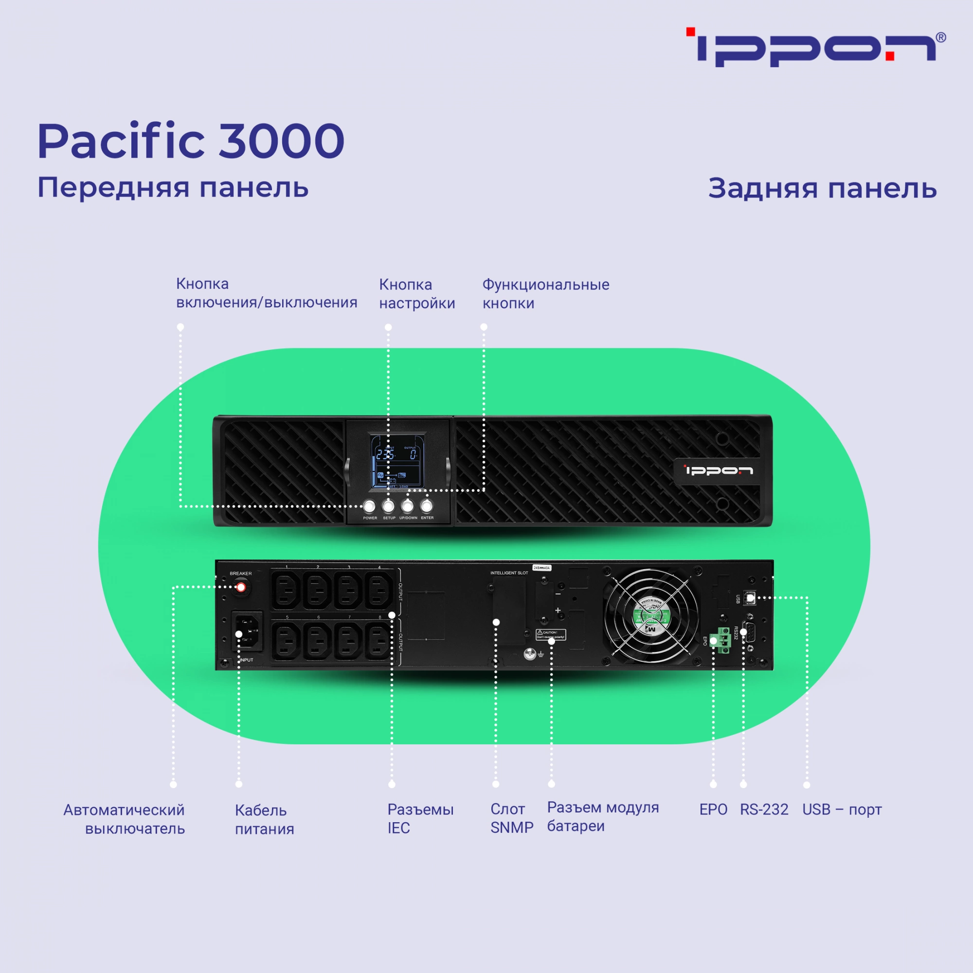 Источник бесперебойного питания Ippon Pacific 3000 2700Вт 3000ВА черный 1976002