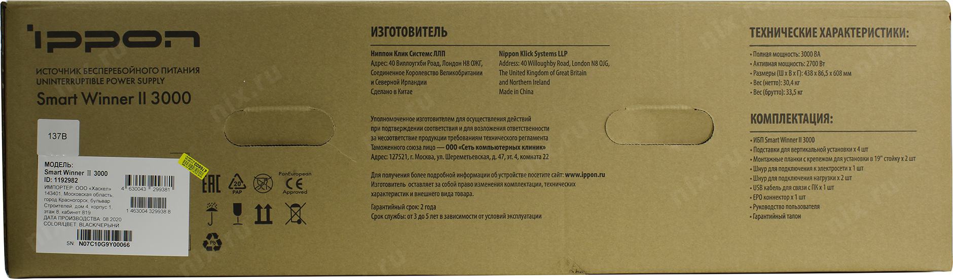 ИБП Ippon SMART WINNER II 3000 2700Вт/3000ВА, black (1192982)
