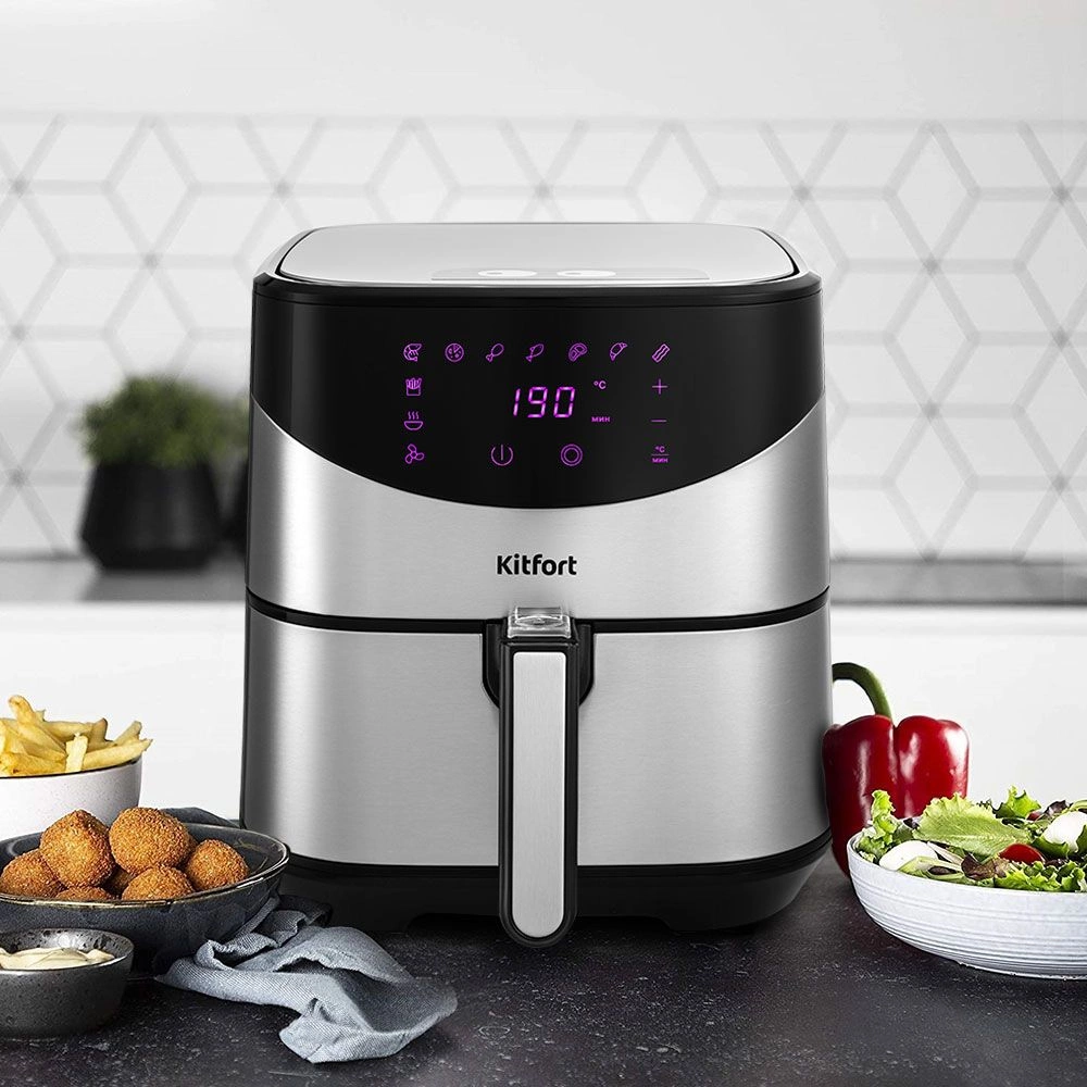 Стильный аэрогриль Kitfort КТ-2231 может использоваться как аэрогриль, а также как аэрофритюрница и духовка и позволяет готовить большинство продуктов с минимальным количеством масла или вовсе без его добавления.