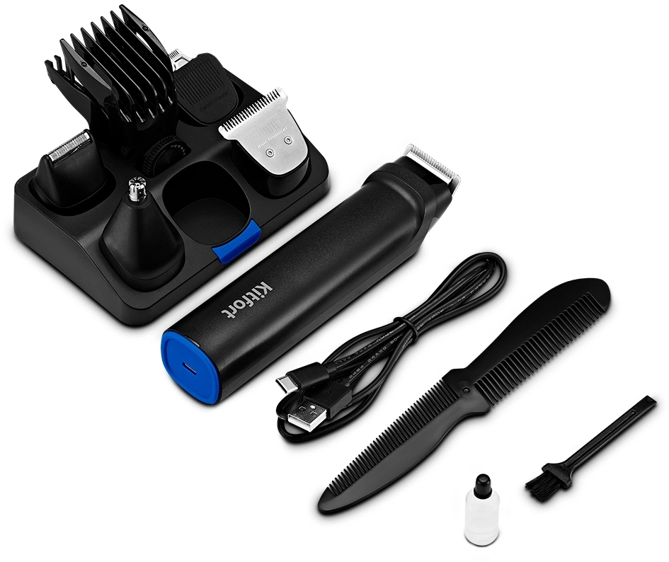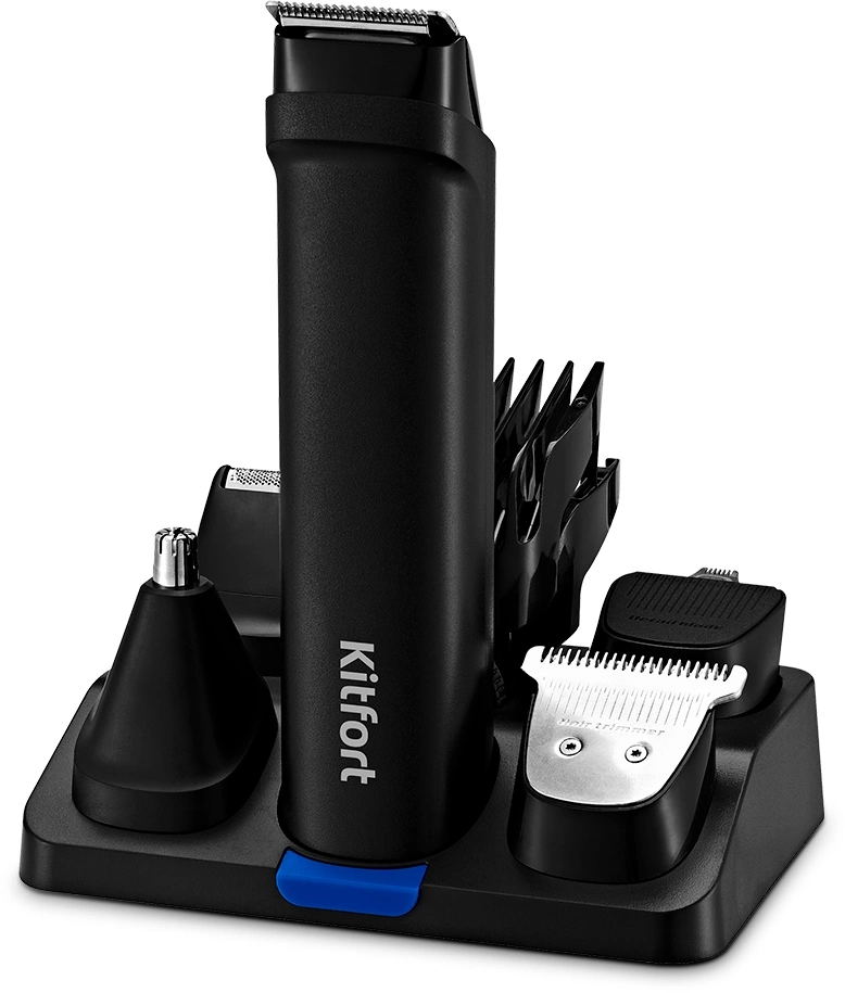 Триммер Kitfort КТ-3140-3 черный/синий 5Вт (насадок в компл:6шт)