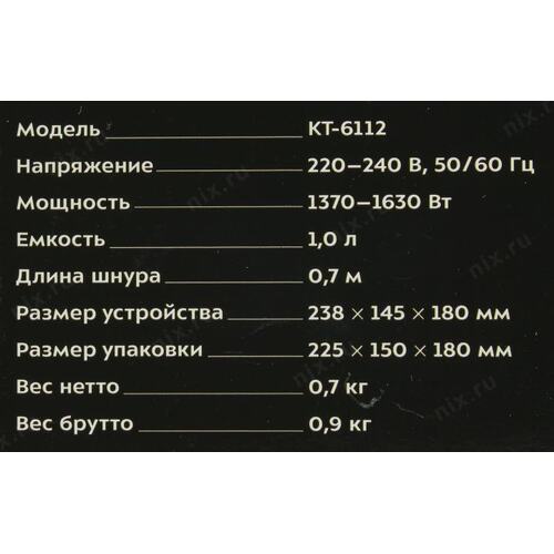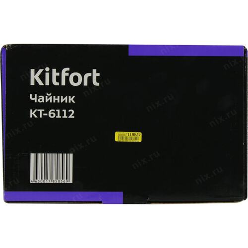Чайник электрический Kitfort KT-6112 1л. 1630Вт белый/черный корпус: металл/пластик (КТ-6112)