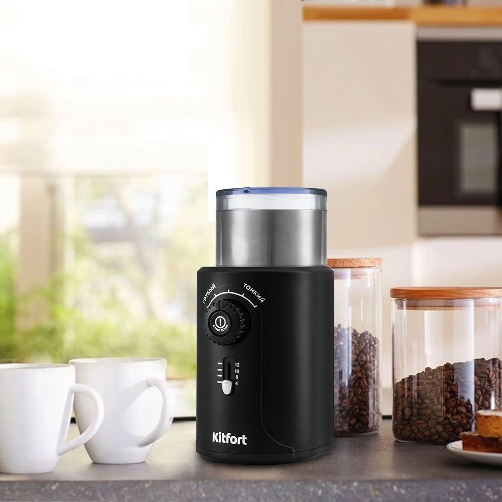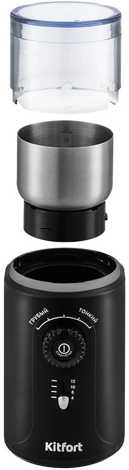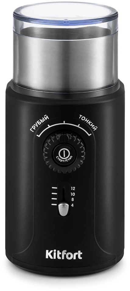 Кофемолка Kitfort KT-747 200Вт сист.помол.:ротац.нож вместим.:70гр черный/серебристый КТ-747