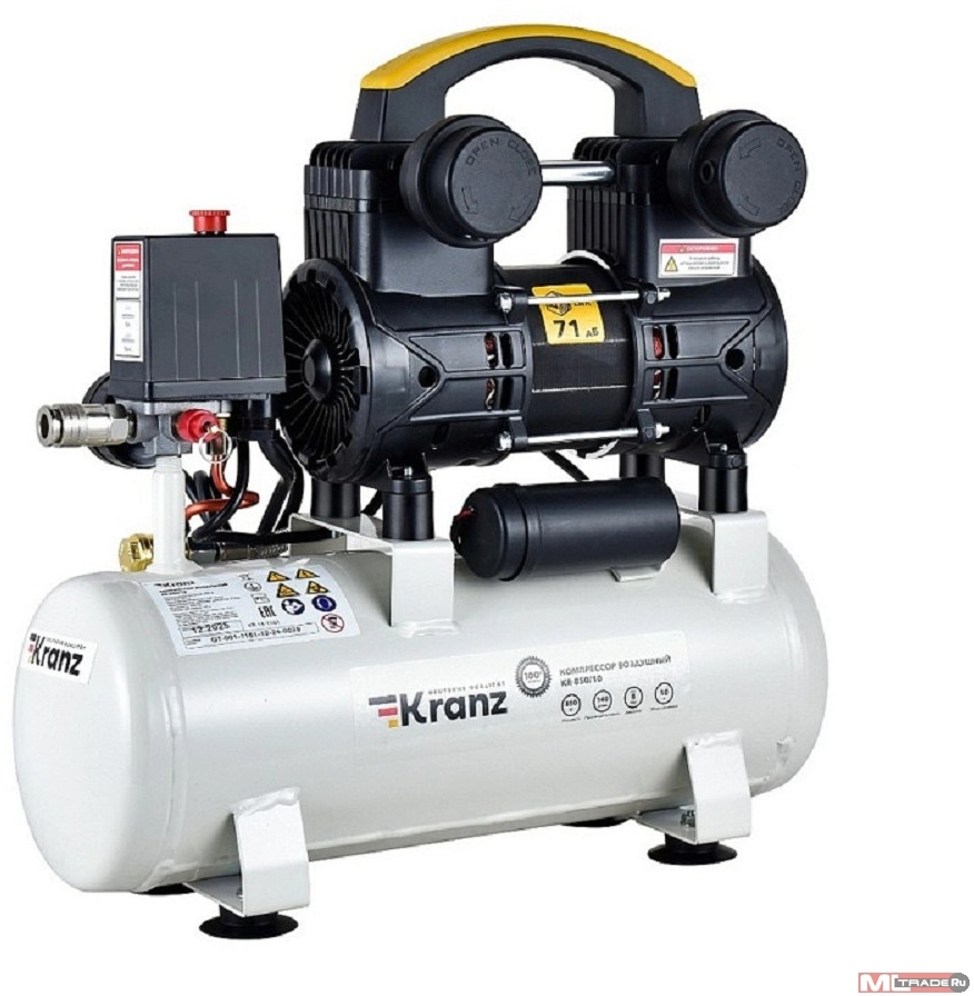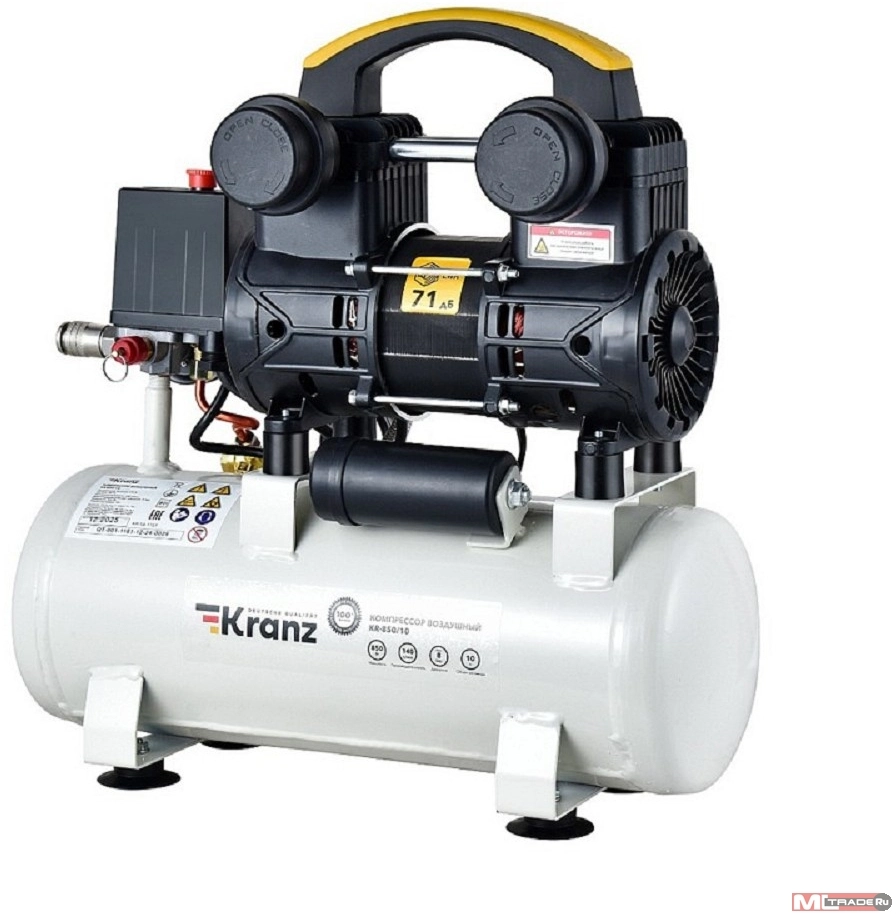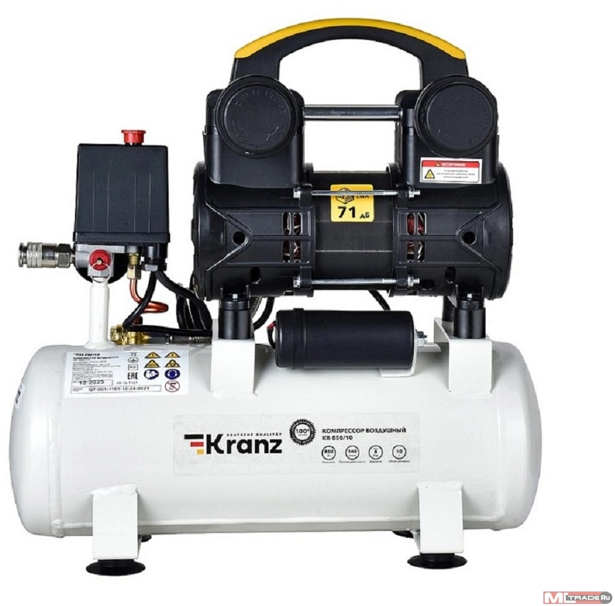 Компрессоры Kranz (KR-16-1161) Компрессор воздушный безмасляный KR-850/10, 850Вт, 140 л/мин, 10л