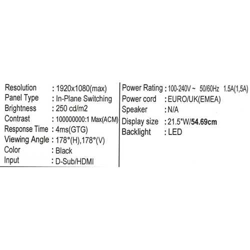 Монитор LCD Acer 21.5" ET221Qbi черный (IPS LED 1920x1080 4ms 178°/178° 16:9 250cd HDMI D-Sub) [UM.WE1EE.001]
