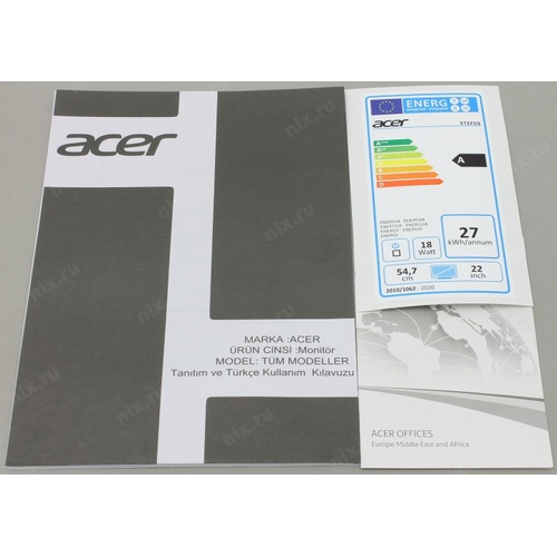 Монитор LCD Acer 21.5" ET221Qbi черный (IPS LED 1920x1080 4ms 178°/178° 16:9 250cd HDMI D-Sub) [UM.WE1EE.001] | НИКС Екатеринбург