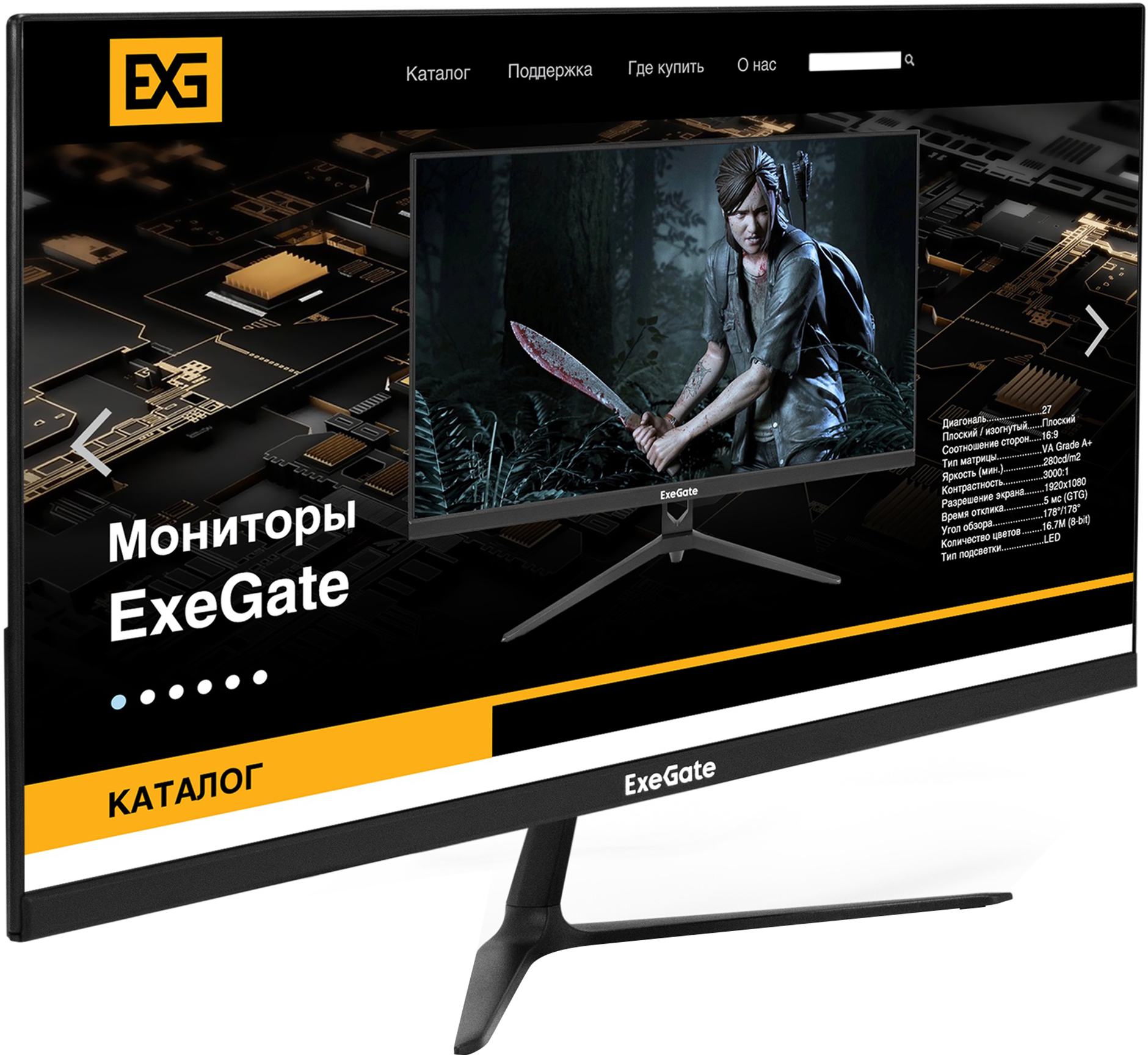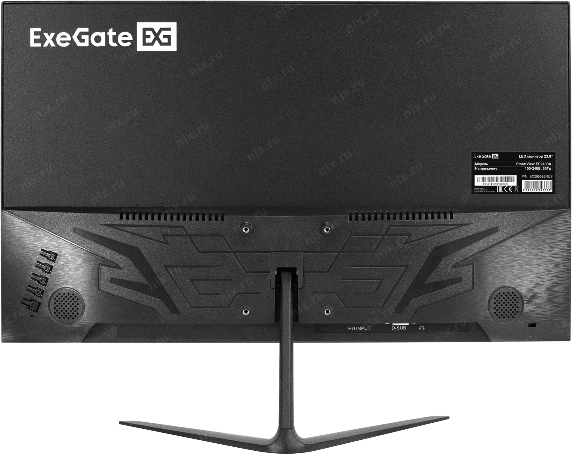 Монитор LCD ExeGate 23.8" EP2400A черный (IPS 1920x1080 75Hz 5ms 250cd 1000:1 178/178 D-Sub HDMI1.4 AudioOut встроенный БП FreeSync VESA, регулировка наклона) [EX295526RUS]