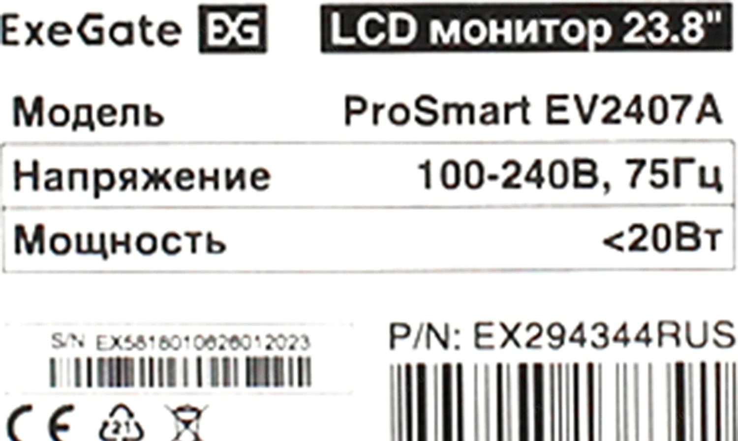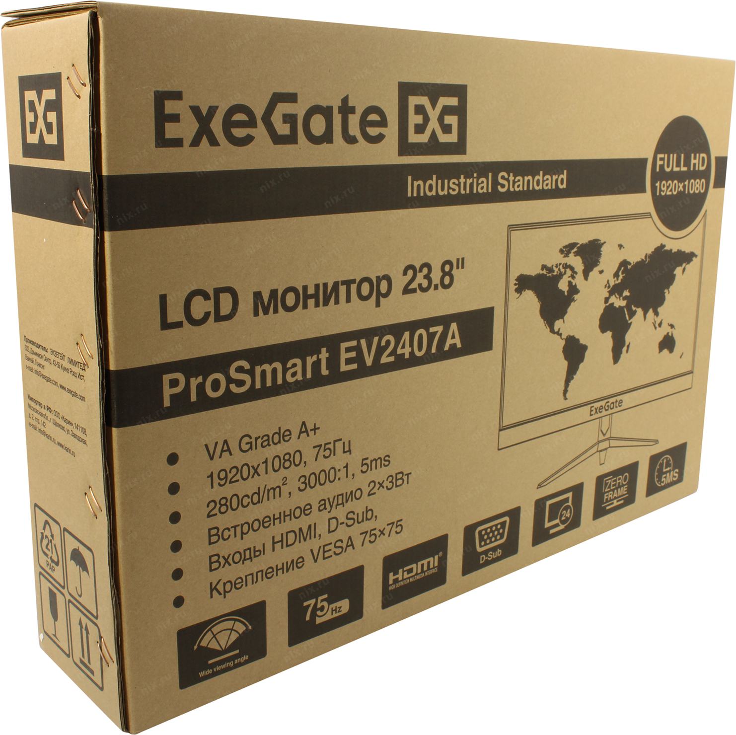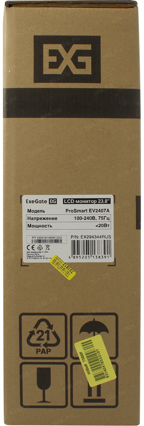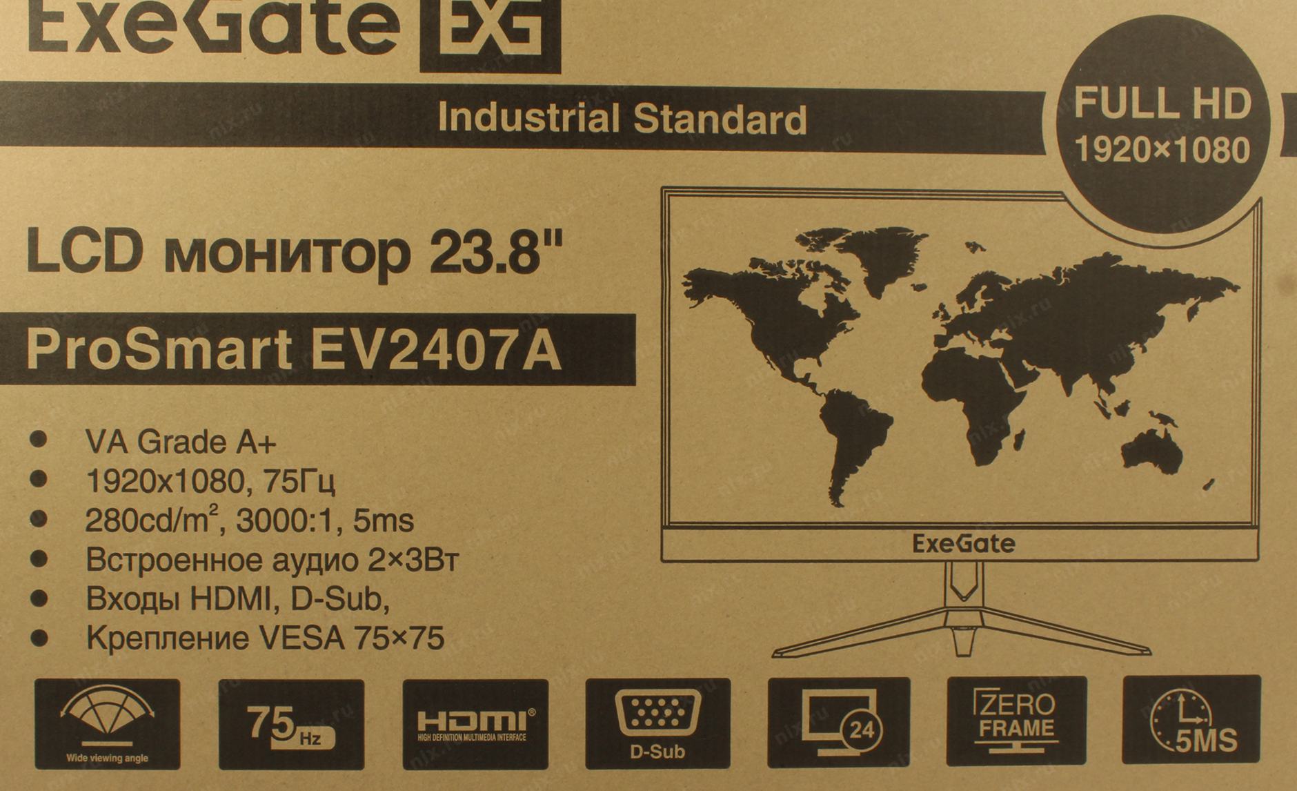 Монитор LCD ExeGate 23.8" EV2407A ProSmart черный (VA 1920x1080 75Hz 5ms 16:9 250cd 3000:1 178/178 D-Sub HDMI2.0 FreeSync LowBlueLight Speakers VESA регулировка наклона) [EX294344RUS]