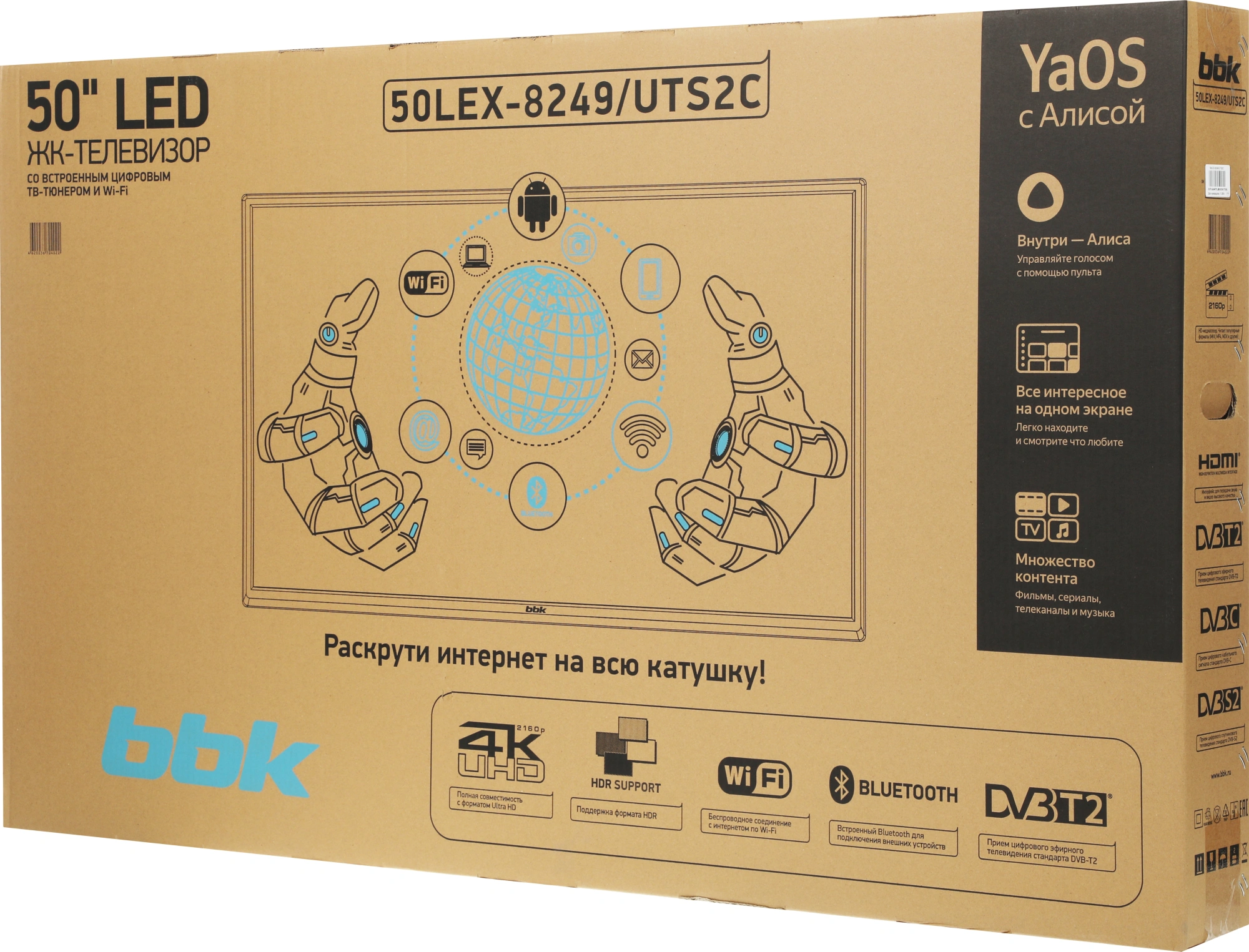 Телевизор LED BBK 50" 50LEX-8249/UTS2C Яндекс.ТВ Frameless черный 4K Ultra HD 60Hz DVB-T2 DVB-C DVB-S2 USB WiFi Smart TV (RUS) 50LEX-8249/UTS2C (B)