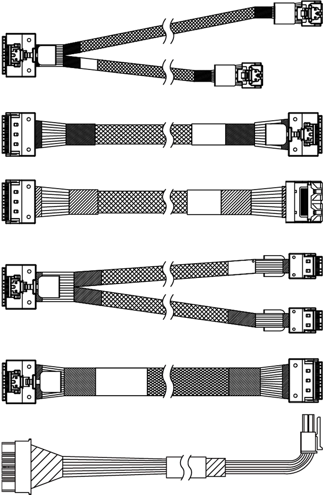 Комплект кабелей (SlimSAS x8 to LP SlimSAS x4*2 (800/840мм), SlimSAS x8 to SlimSAS x8 (930мм), Mini-SAS HD x8 to SlimSAS x8 (930мм), SlimSAS x8 to SlimSAS x4*2 (140мм), SlimSAS x8 to SlimSAS x8 (200мм), кабель питания 170мм)