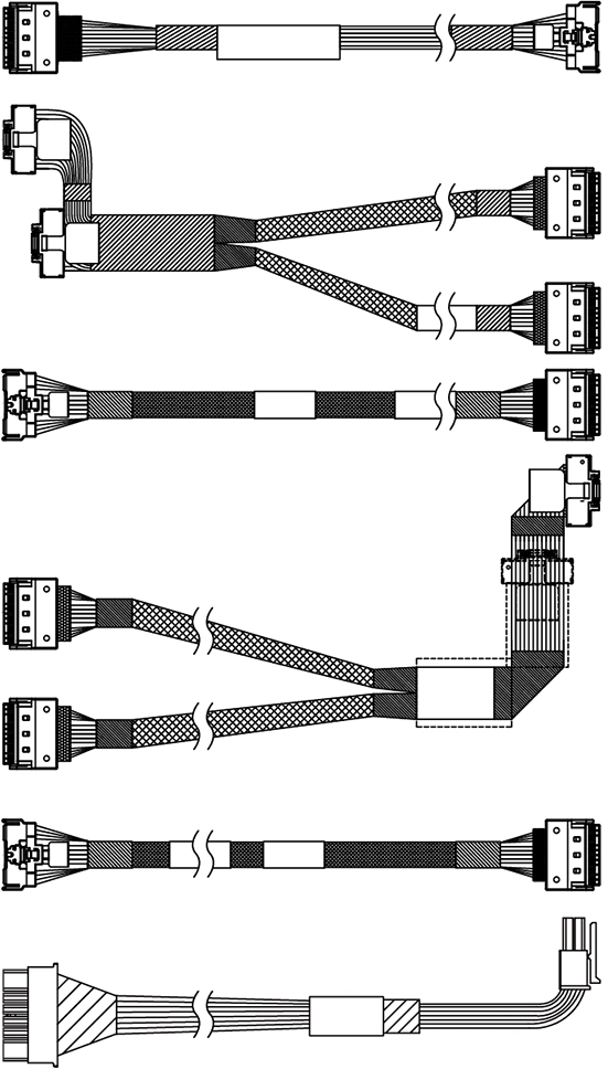 Комплект кабелей (2х MCIO x8 to SlimSAS x8 (160мм), Swift x8*2 to SlimSAS x8*2 (200/240мм), 2ч MCIO x8 to SlimSAS x8 (320мм), SlimSAS x8*2 to Swift x8*2 (420/460мм), 2х MCIO x8 to SlimSAS x8 (530мм), кабель питания 170мм)