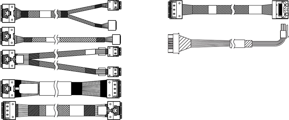 Комплект кабелей (SlimSAS x8 to LP SlimSAS x4 * SlimSAS x4(720мм), SlimSAS x8 to LP SlimSAS x4(720мм), SlimSAS x8 to SlimSAS x4*2 (140мм), SlimSAS x8 to SlimSAS x8 (110мм), SlimSAS x8 to SlimSAS x8 (770мм), SlimSAS x8 to Mini-SAS HD x8 (780мм), кабель питания 170мм)