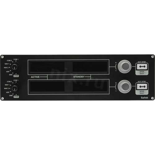 Радиопанель с 2 поворотными переключателями для быстрой настройки.;;Ресиверы COM1 и COM2 предназначены для связи и работы с диспетчерами воздушного движения.;;Приемники NAV1 и NAV2 служат для настройки частоты радионавигационного оборудования.;;ADF (Automatic Direction Finder) - автоматический радиокомпас.;;DME (Distance Measuring Equipment) - вид радионавигационной системы, обеспечивающей определение расстояния от наземной станции до воздушного судна.;;XPDR - режим работы ответчика, в котором он принимает сигнал от диспетчерского радара и передает в ответ свой код ("режим Чарли"). Важно не забывать включать "режим Чарли" перед тем, как занять взлетно-посадочную полосу и выключать его после освобождения полосы.