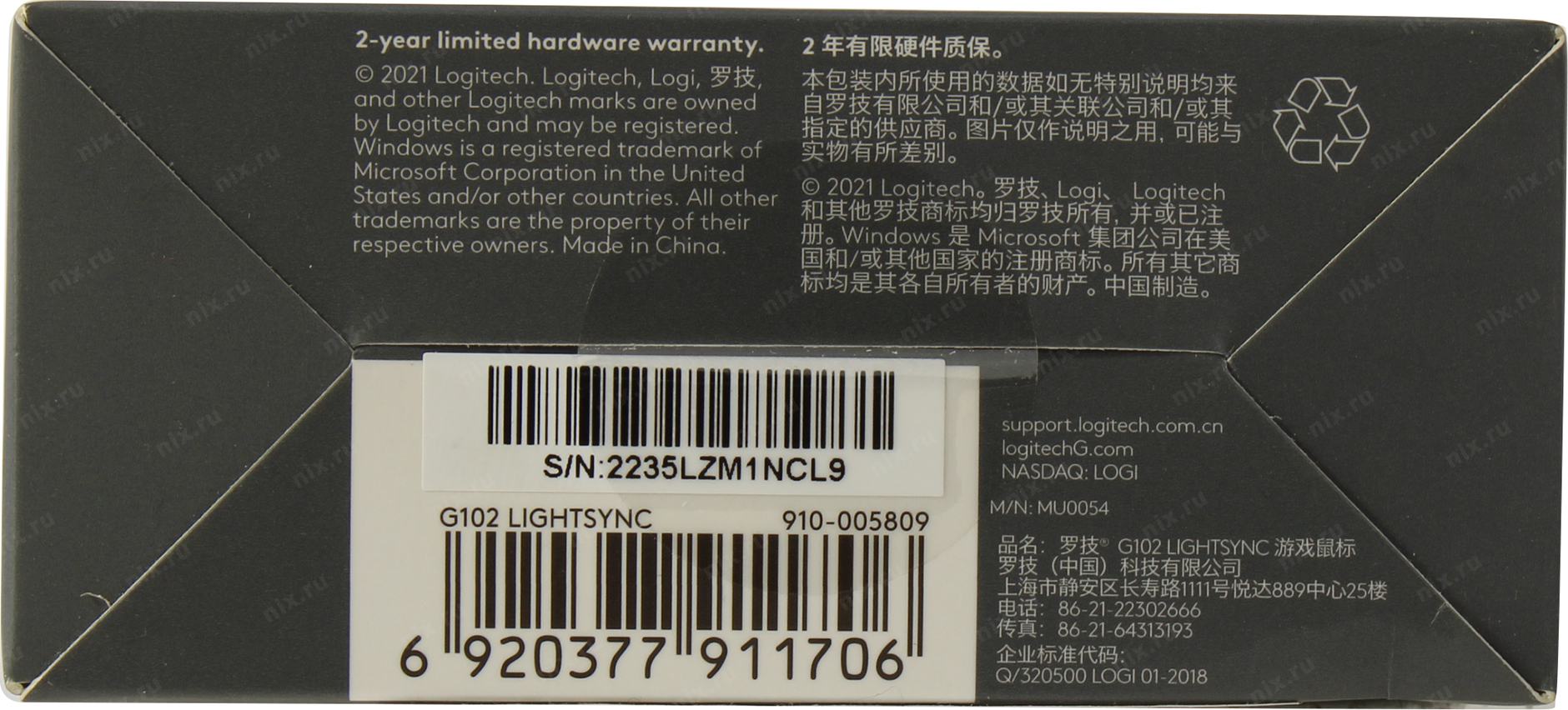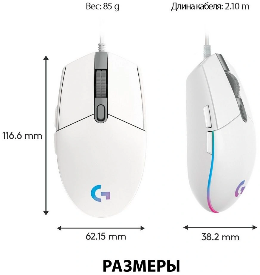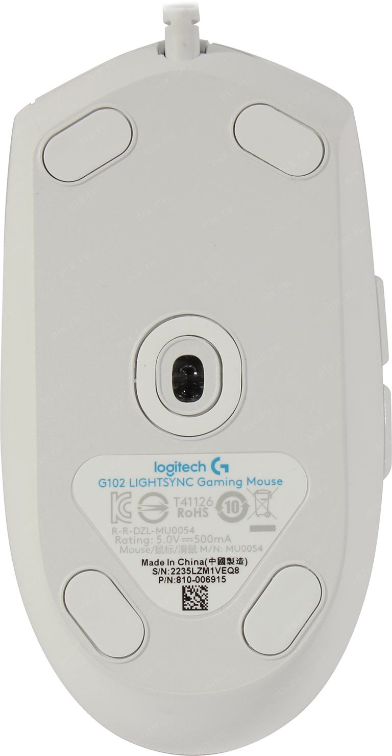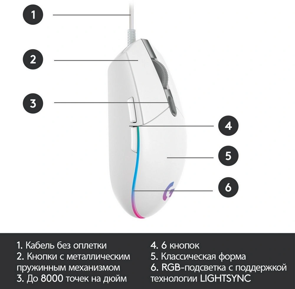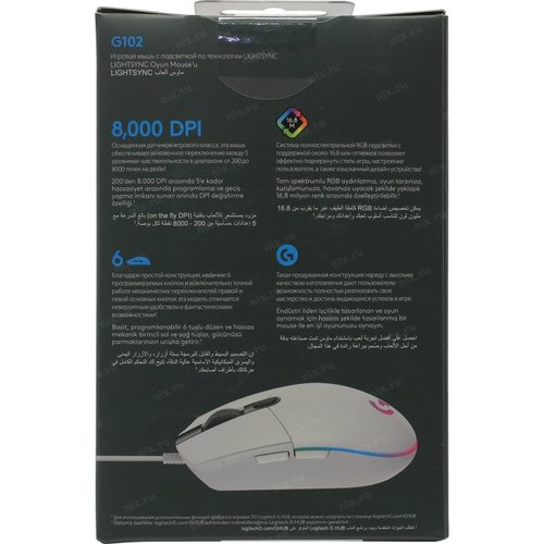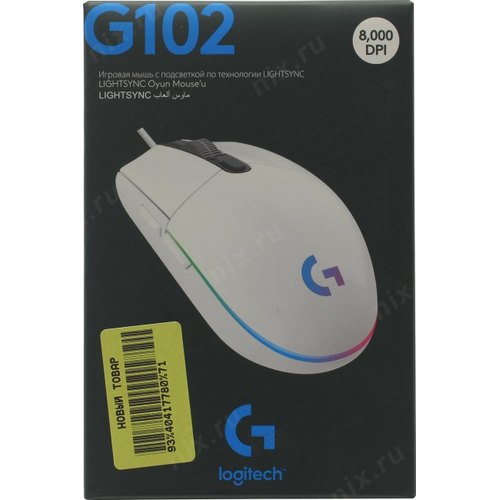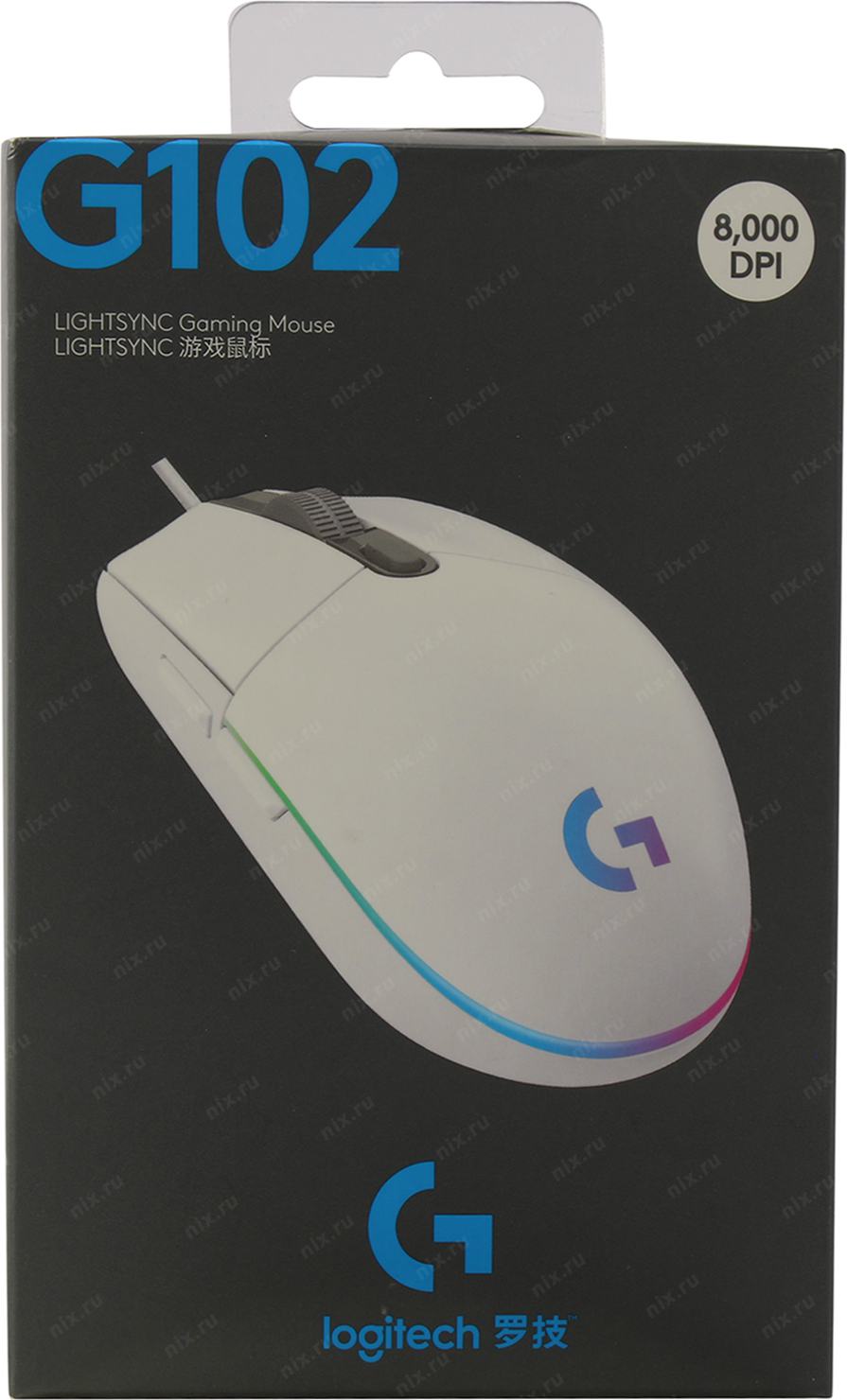 Мышь игровая Logitech G102 LIGHTSYNC White белая, оптическая, 200-8000dpi, 2.1м USB2.0, 6 программируемых кнопок, RGB подсветка, под обе руки (G102 White) 910-005809
