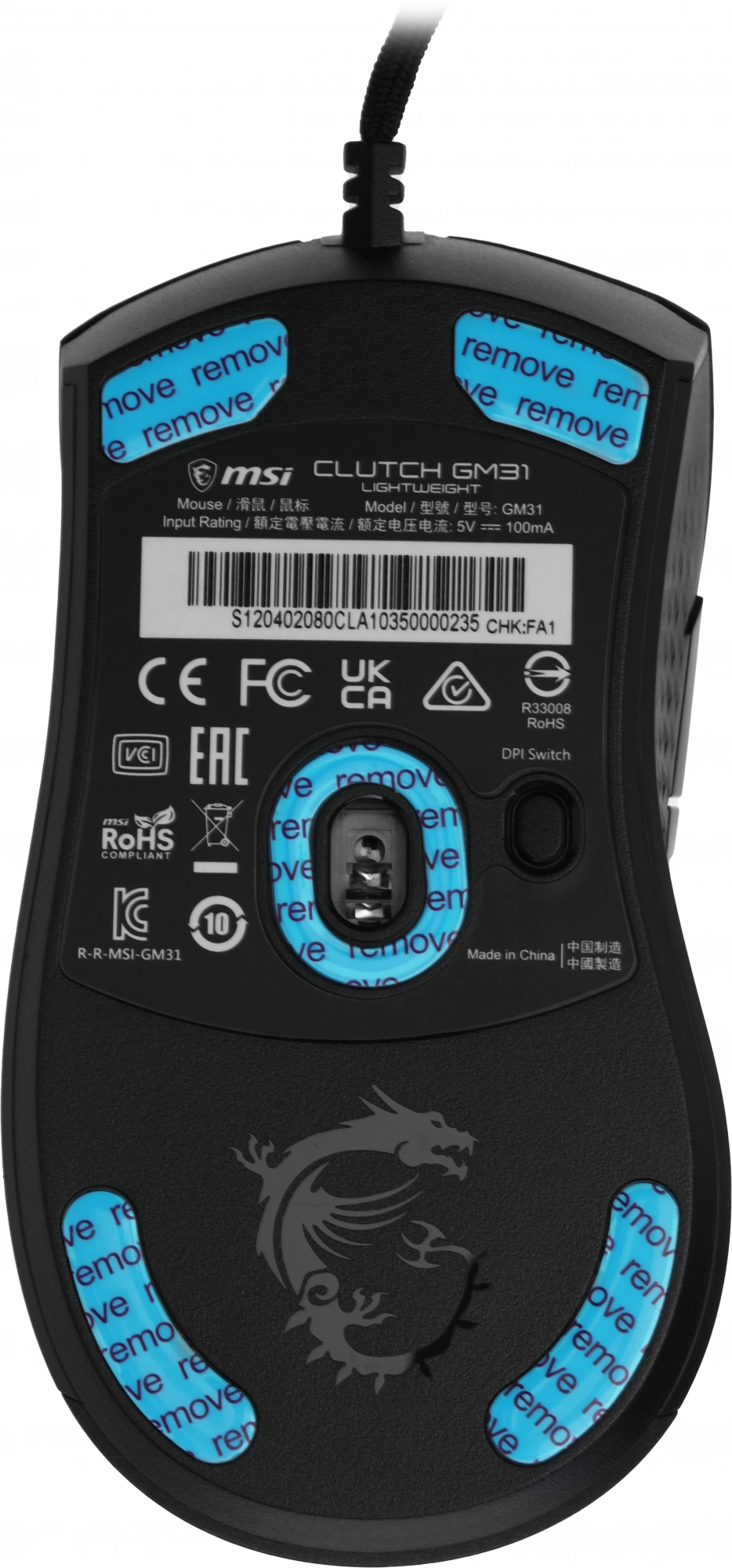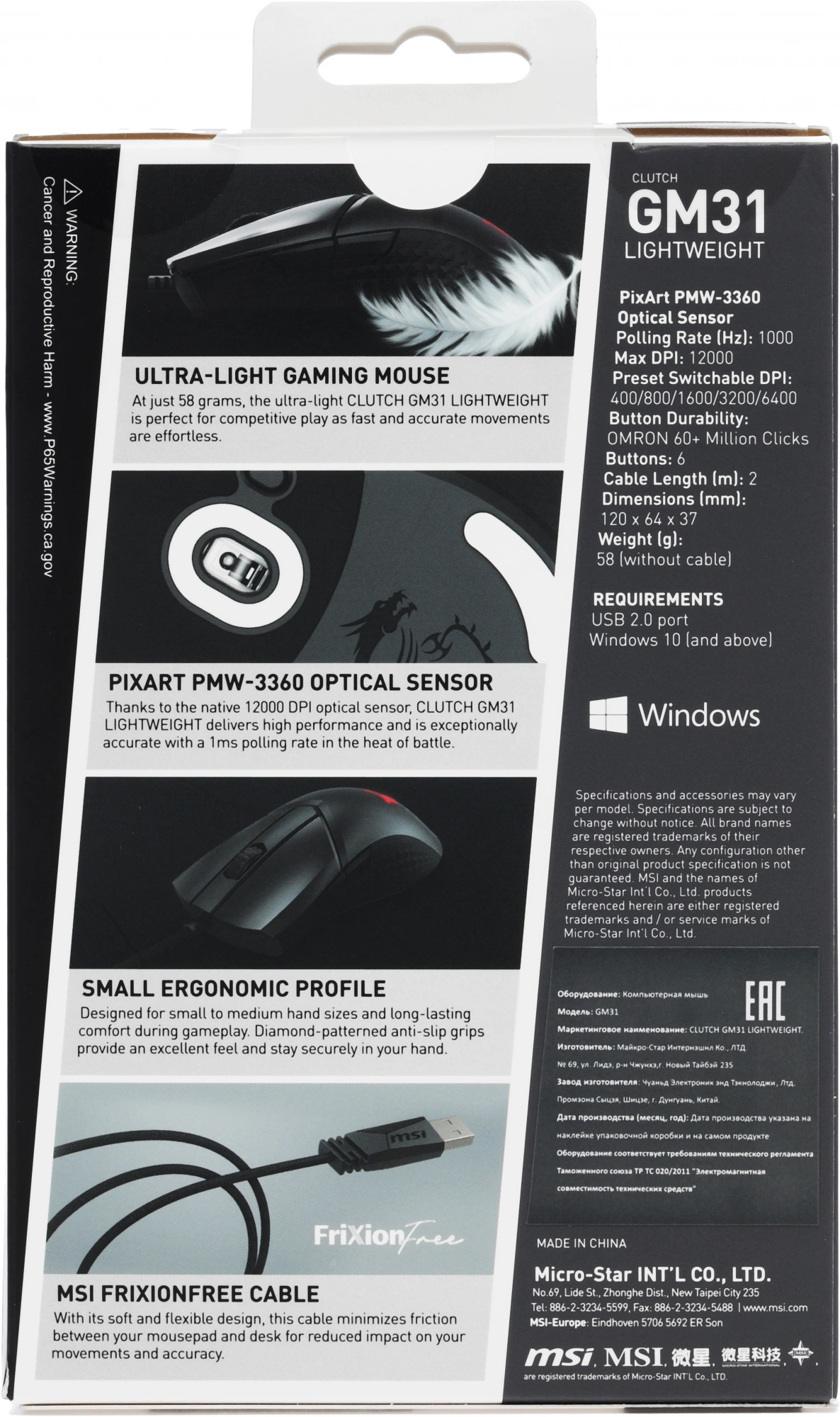 Мышь MSI Clutch GM31 Lightweight черный оптическая 12000dpi USB 4but (S12-0402080-CLA)