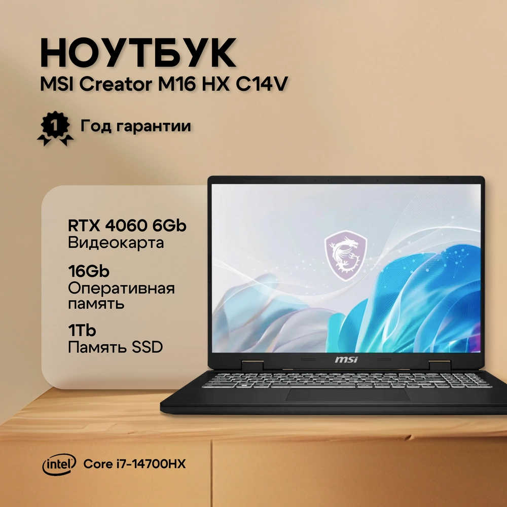 Ноутбук MSI Creator M16 HX C14VFG-035RU Core i7 14700HX 16Gb SSD1Tb NVIDIA GeForce RTX4060 8Gb 16" IPS QHD+ (2560x1600) Windows 11 Pro grey WiFi BT Cam (9S7-15P212-035)