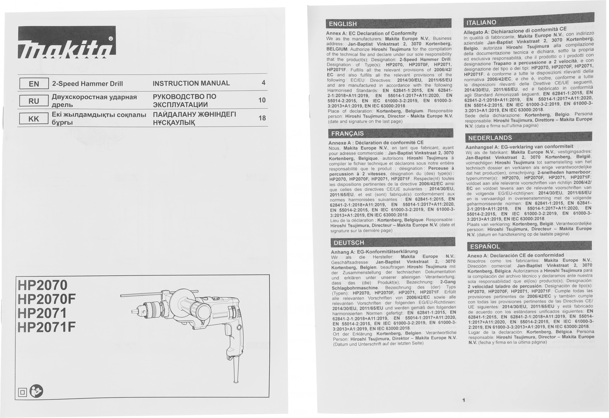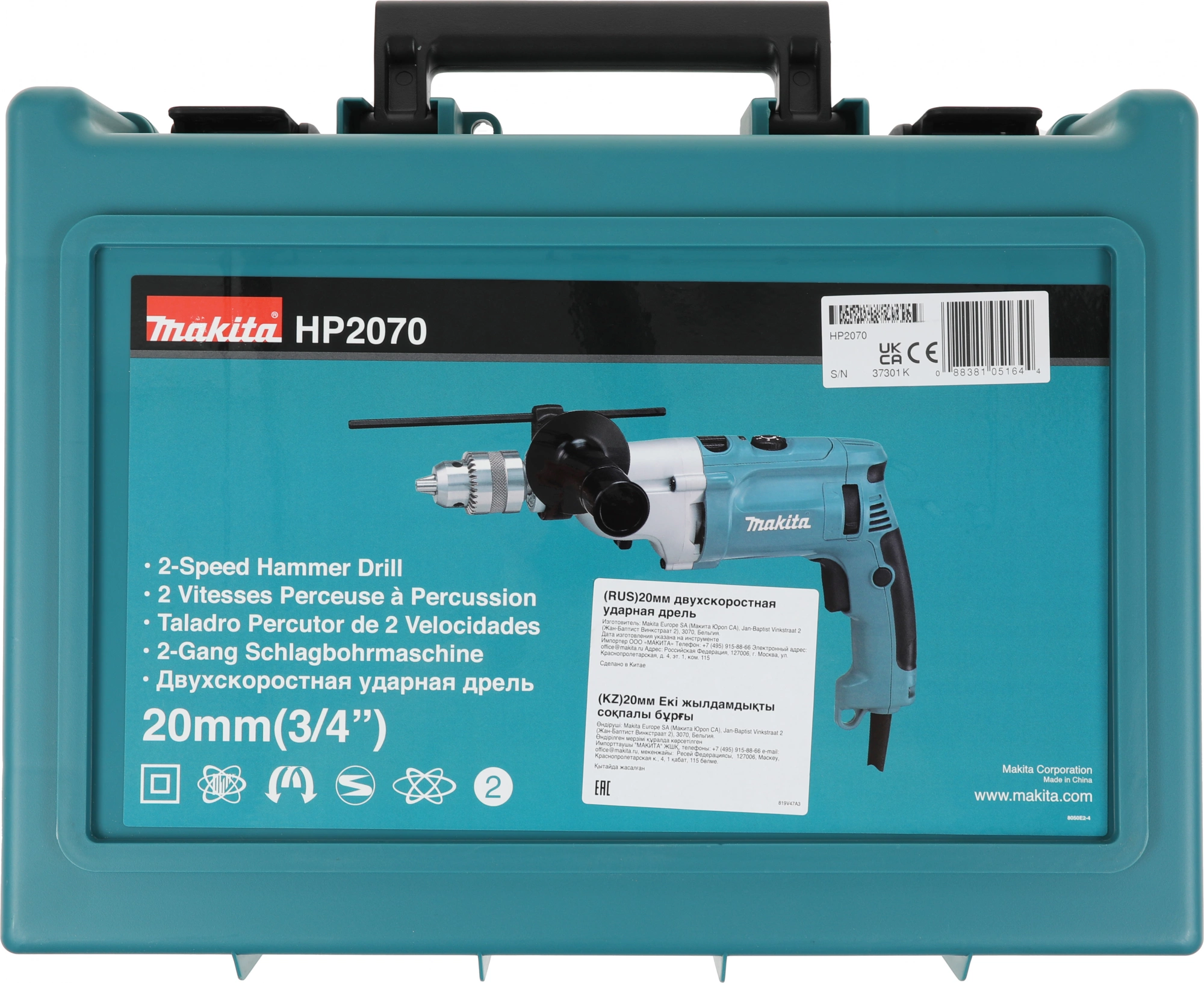 Makita < HP2070> Ударная дрель (1010W, 2900 об/ мин, 13 мм, 2 скорости, регулятор, реверс, ключ, кейс)
