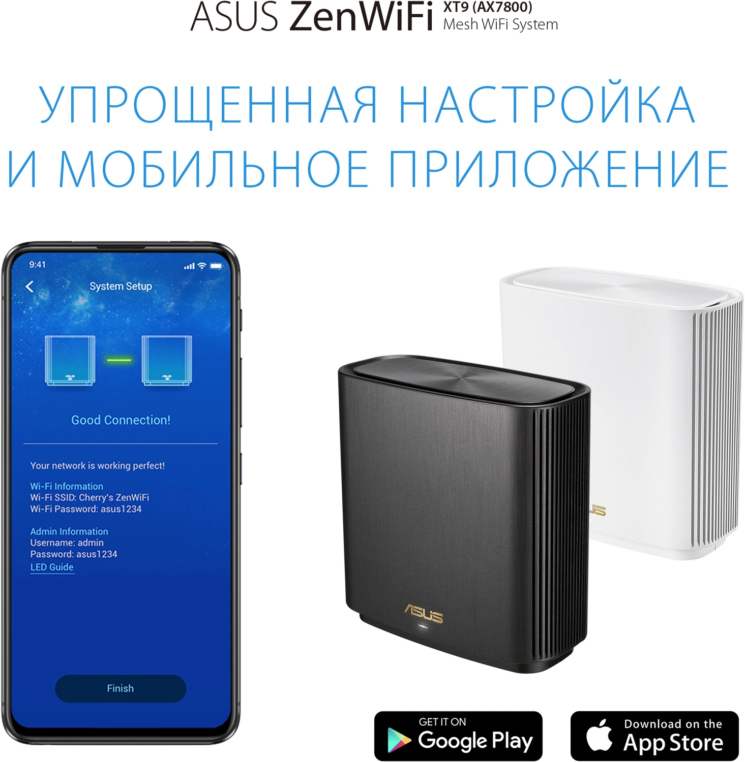 Беспроводная ячеистая система ZenWiFi XT9 состоит из пары трехдиапазонных маршрутизаторов ASUS стандарта Wi-Fi 6 (AX7800). Она предназначена для развертывания скоростной, надежной и защищенной сети Wi-Fi в помещениях большого размера.