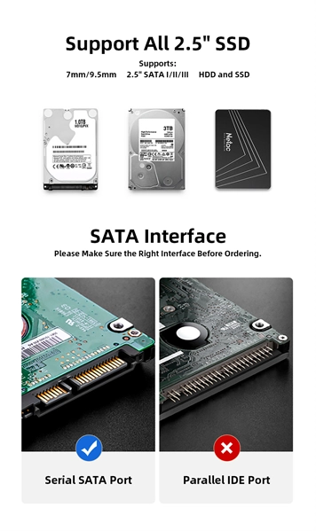 Мобильное шасси Netac <NT07WH11-30B0> (EXT BOX для внешнего подключения 2.5" SATA HDD, USB3.0)