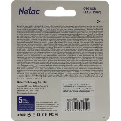 Носитель информации Netac USB Drive 128GB U782C USB3.0+TypeC Dual [NT03U782C-128G-30PN/NT03U782C-128G-32PN]
