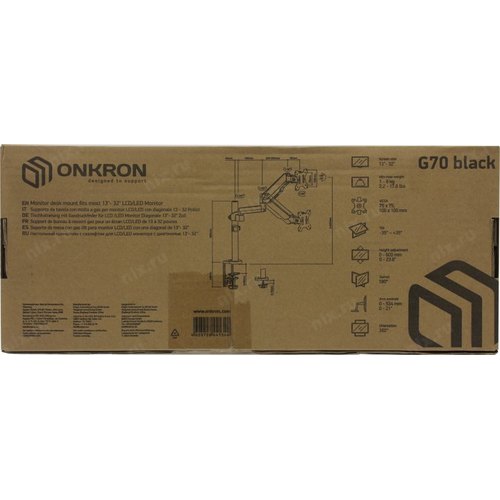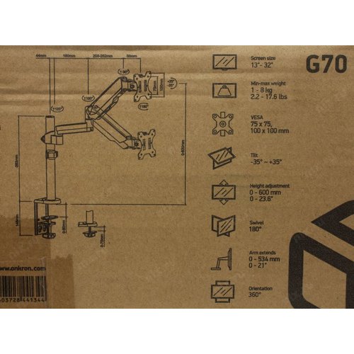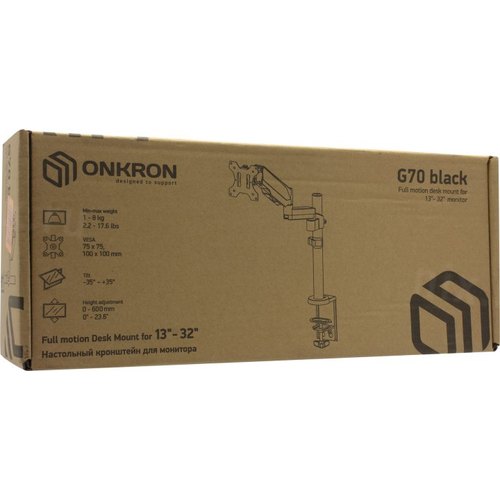 Крепления для мониторов ONKRON G70 чёрный (Для экранов диагональю 13"-34" Допустимая нагрузка: 1-8 кг (2.2 - 17.6 lbs) VESA: 100x100, 75x75) [4603728441344]