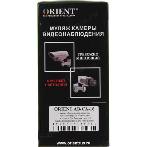 Orient <AB-CA-16> Муляж камеры видеонаблюдения (Датчик движения, поворотный механизм,LED,питание от батарей 3xAA)