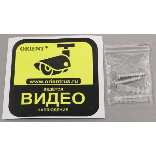 Встроенный датчик движения, поворотный механизм и красный светодиод. В комплект поставки входит наклейка "Ведется видеонаблюдение"