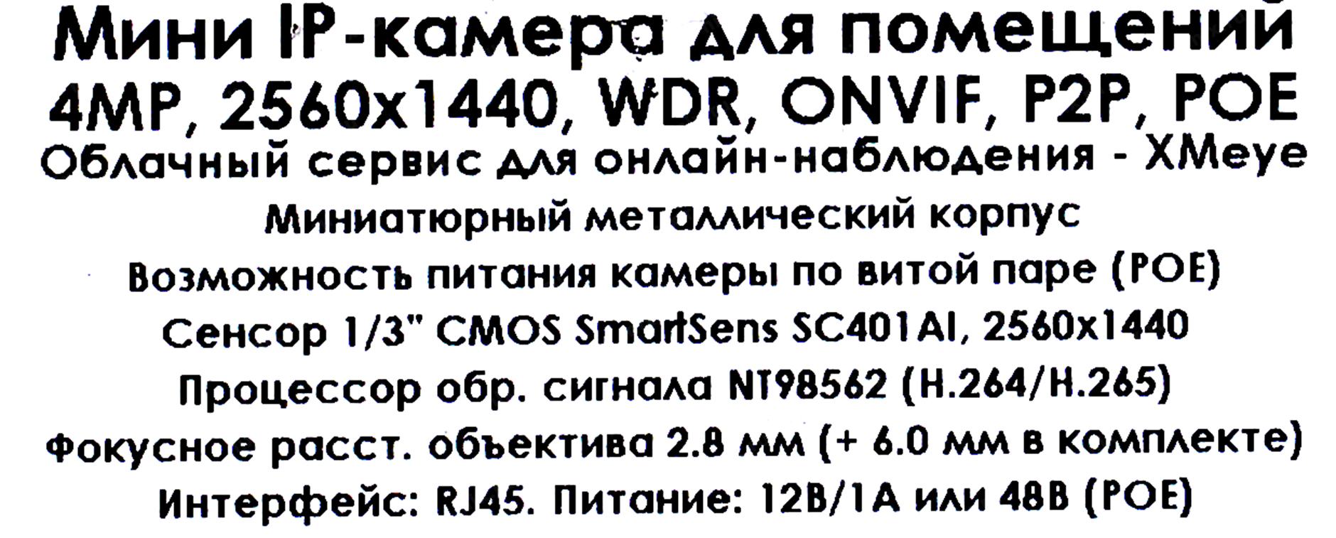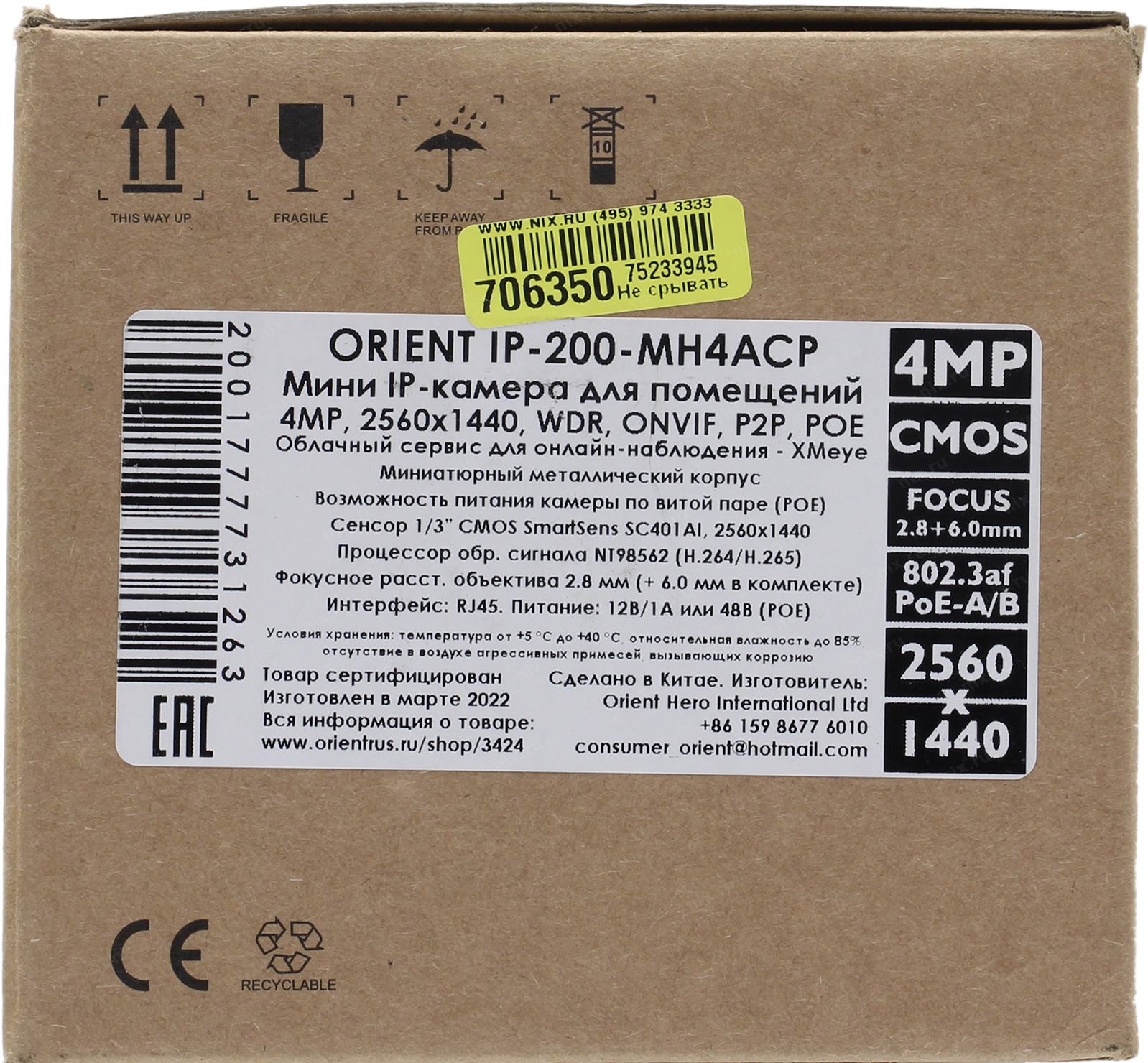 Интернет-камера Orient <IP-200-MH4ACP> (2560x1440, f=2.8/6mm, 1UTP 100Mbps PoE)