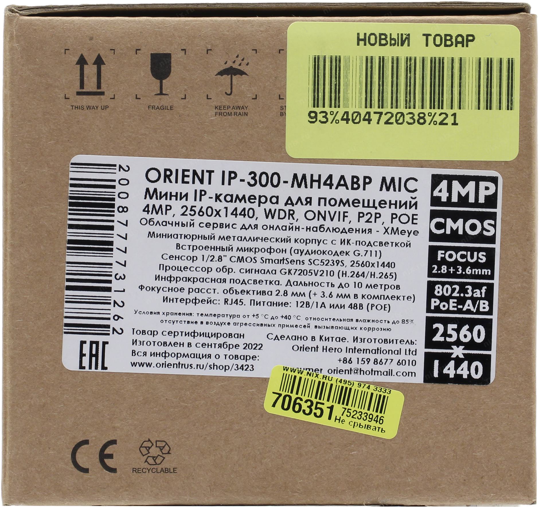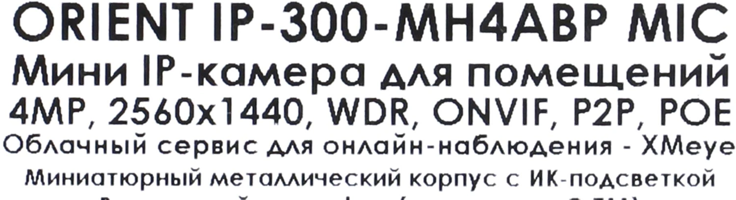 Интернет-камера Orient <IP-300-MH4ABP MIC> (2560x1440, f=2.8/3.6mm, 1UTP 100Mbps PoE, микрофон, LED)