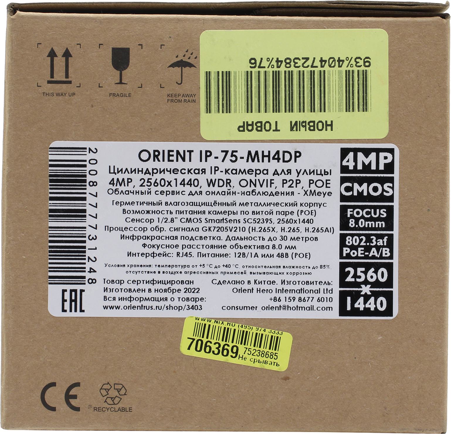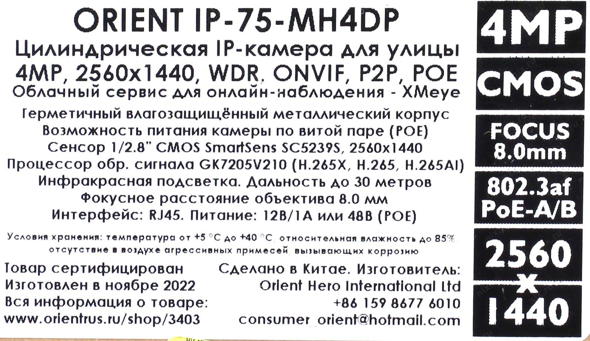 Видеокамера Orient <IP-75-MH4DP> (2560x1440, f=8mm, 1UTP 100Mbps PoE, LED)