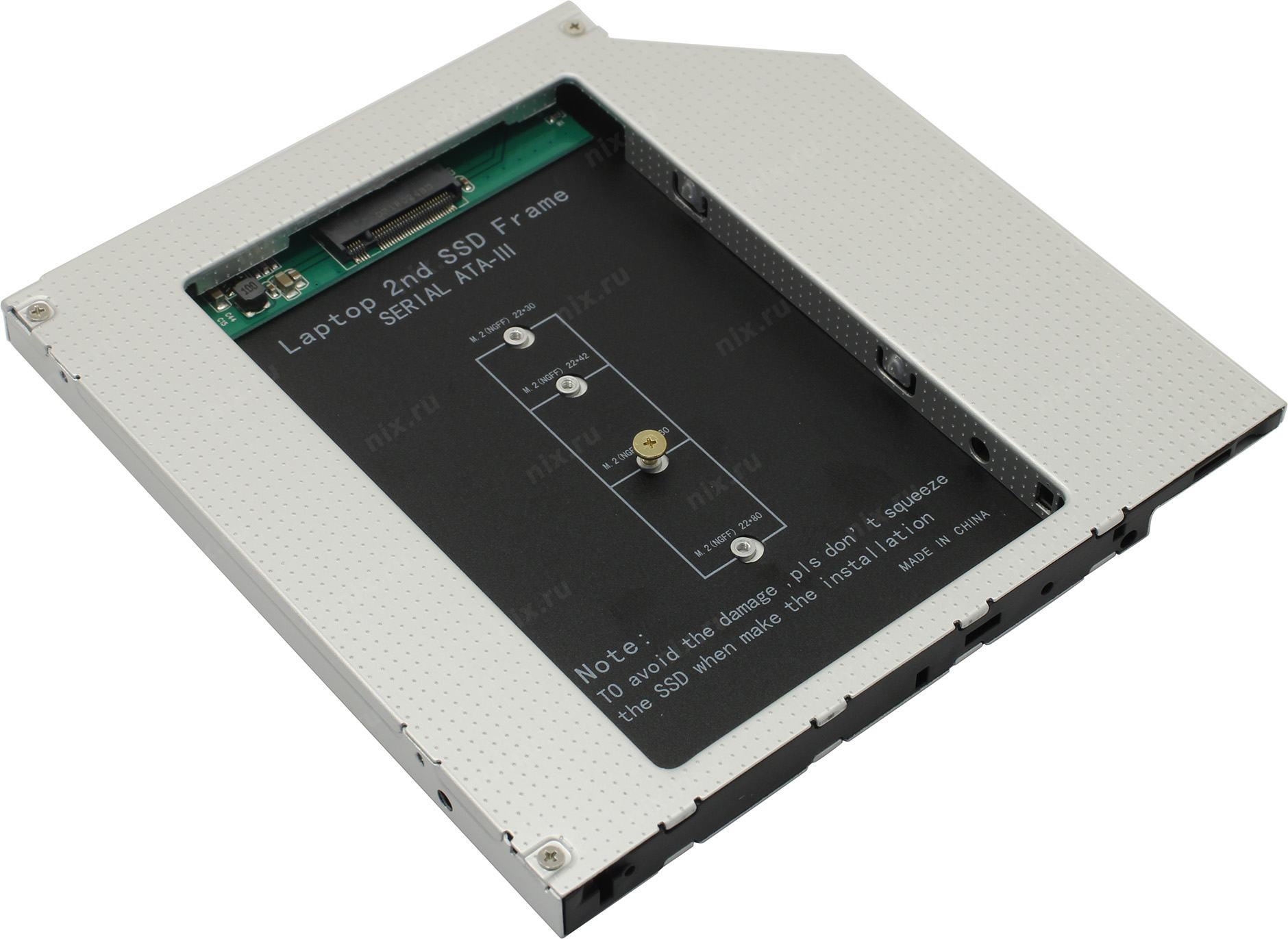 Переходник, позволяющий установить M.2 SSD вместо оптического привода ноутбука высотой 9.5 мм. Такие устройства также называют Optibay, HDD Caddy, адаптер hdd вместо dvd