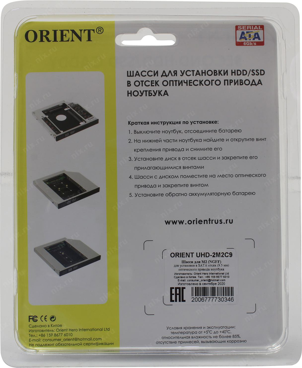 Устройство Orient <UHD-2M2C9> Шасси для M.2 2280 для установки в SATA 9.5мм отсек оптического привода ноутбука