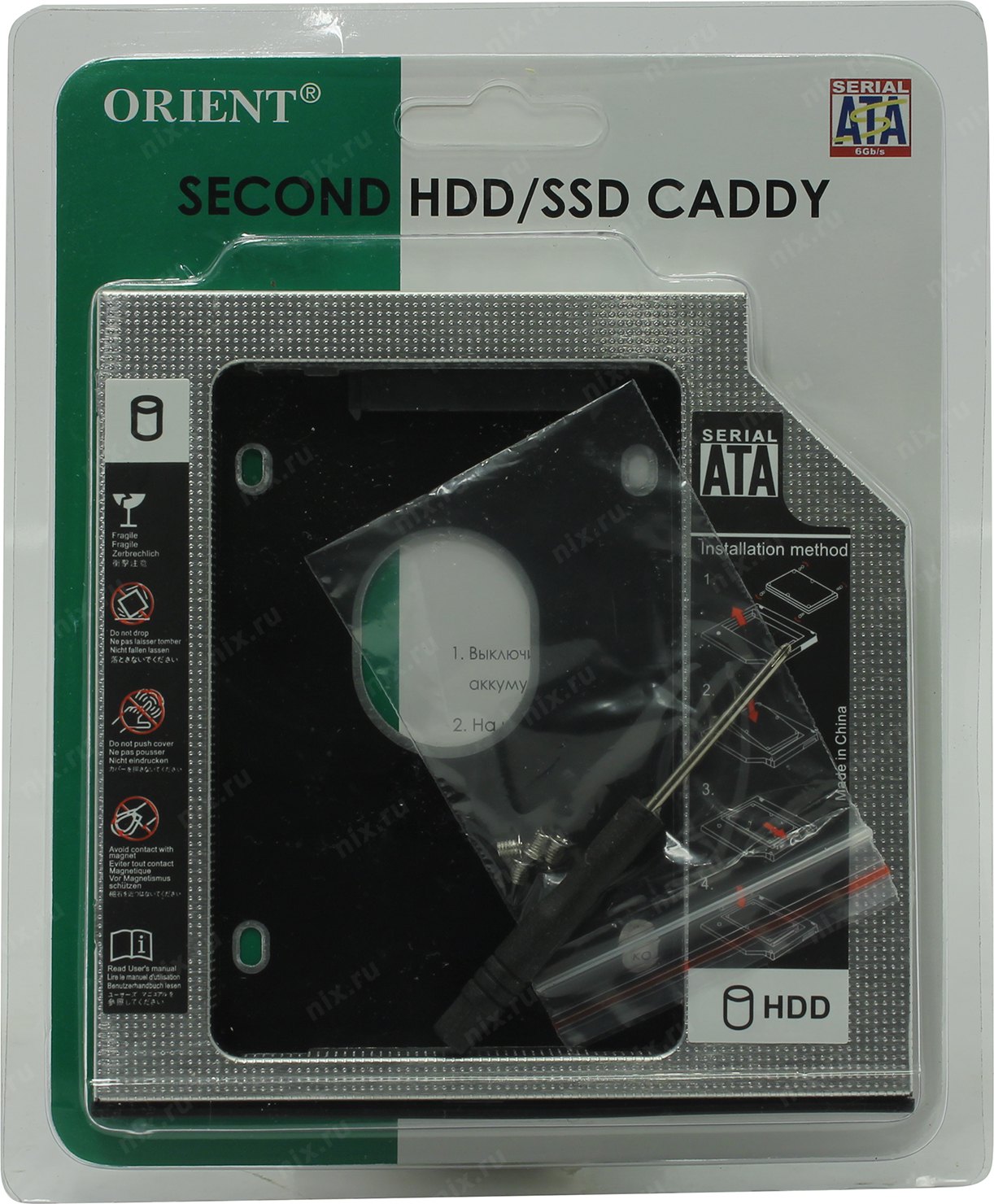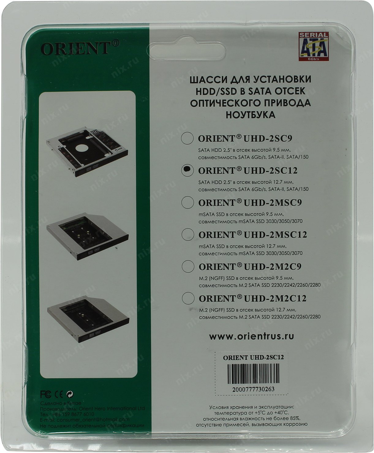 Устройство Orient <UHD-2SC12>Шасси для 2.5" SATA HDD 9.5мм для установки в SATA 12.7мм отсек оптического привода ноутбука
