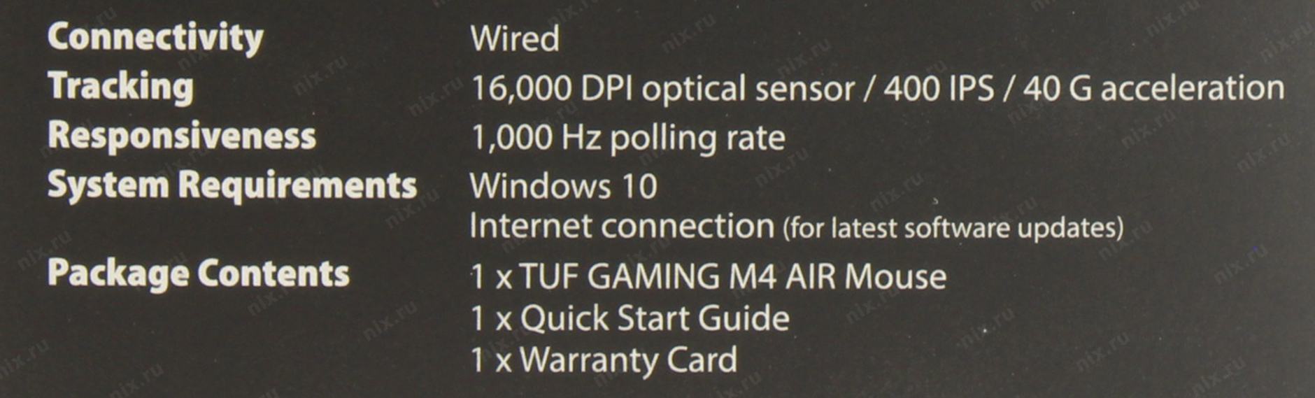 Мышь ASUS P307 TUF GAMING M4 AIR 47g 16,000DPI 6buttons wired 90MP02K0-BMUA00