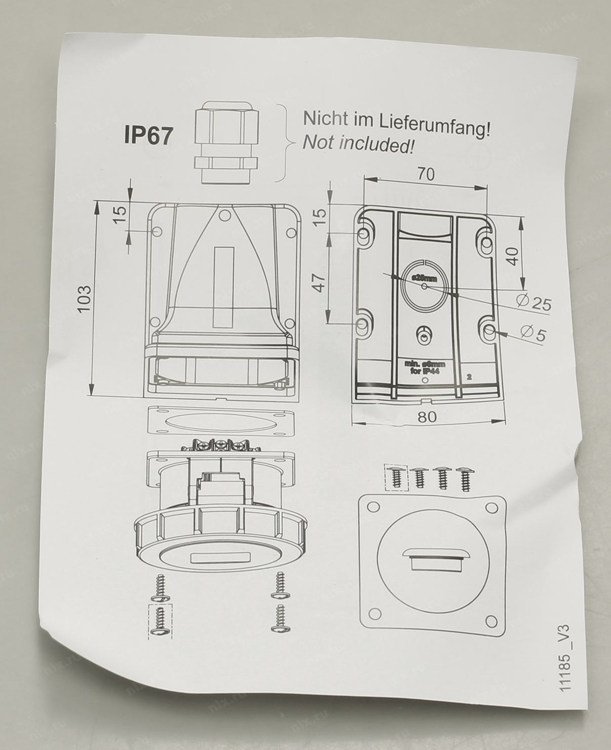 PCE 1132-6 < 144042> Розетка настенная 16А/ 230V/ 1P+N+E/ IP67
