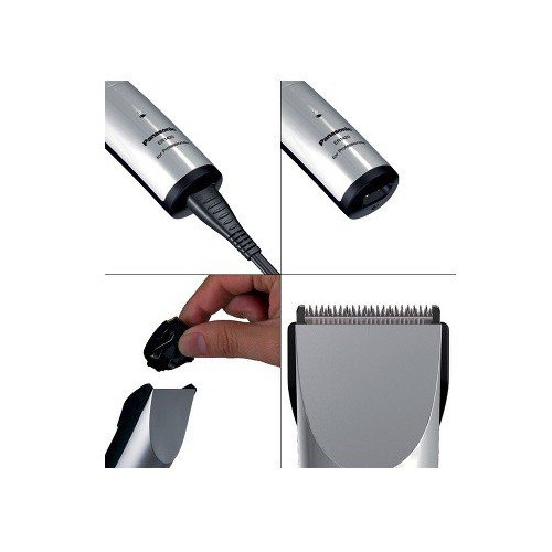 Регулировать высоту стрижки позволяют три насадки и шесть установок длины. Ножи изготовлены из нержавеющей стали, специальная заточка обеспечивает легкую стрижку без ощущения дискомфорта. Скорость мотора 7 000 об/мин. Скорость стрижки 34 000 волос/сек.