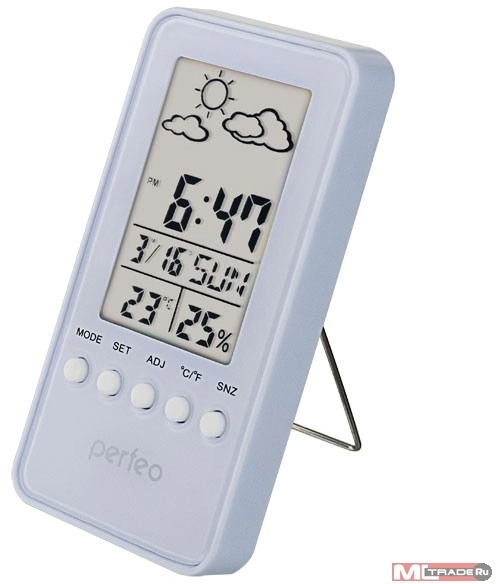 На монохромном дисплее одновременно отображаются время, дата, день недели, температура и влажность. Встроенный будильник имеет функцию повтора.