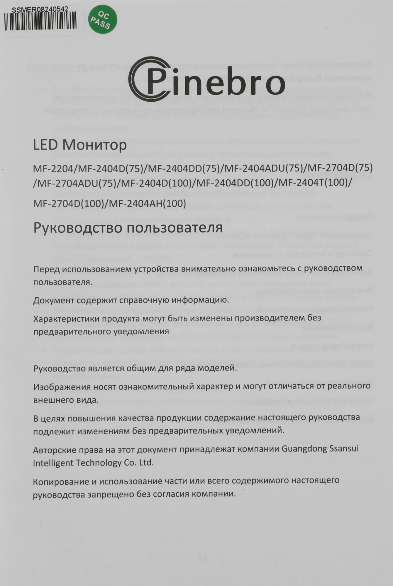 Монитор Pinebro 23.8" MF-2404D черный IPS LED 5ms 16:9 HDMI M/M матовая 250cd 178гр/178гр 1920x1080 75Hz VGA DP FHD 2.7кг