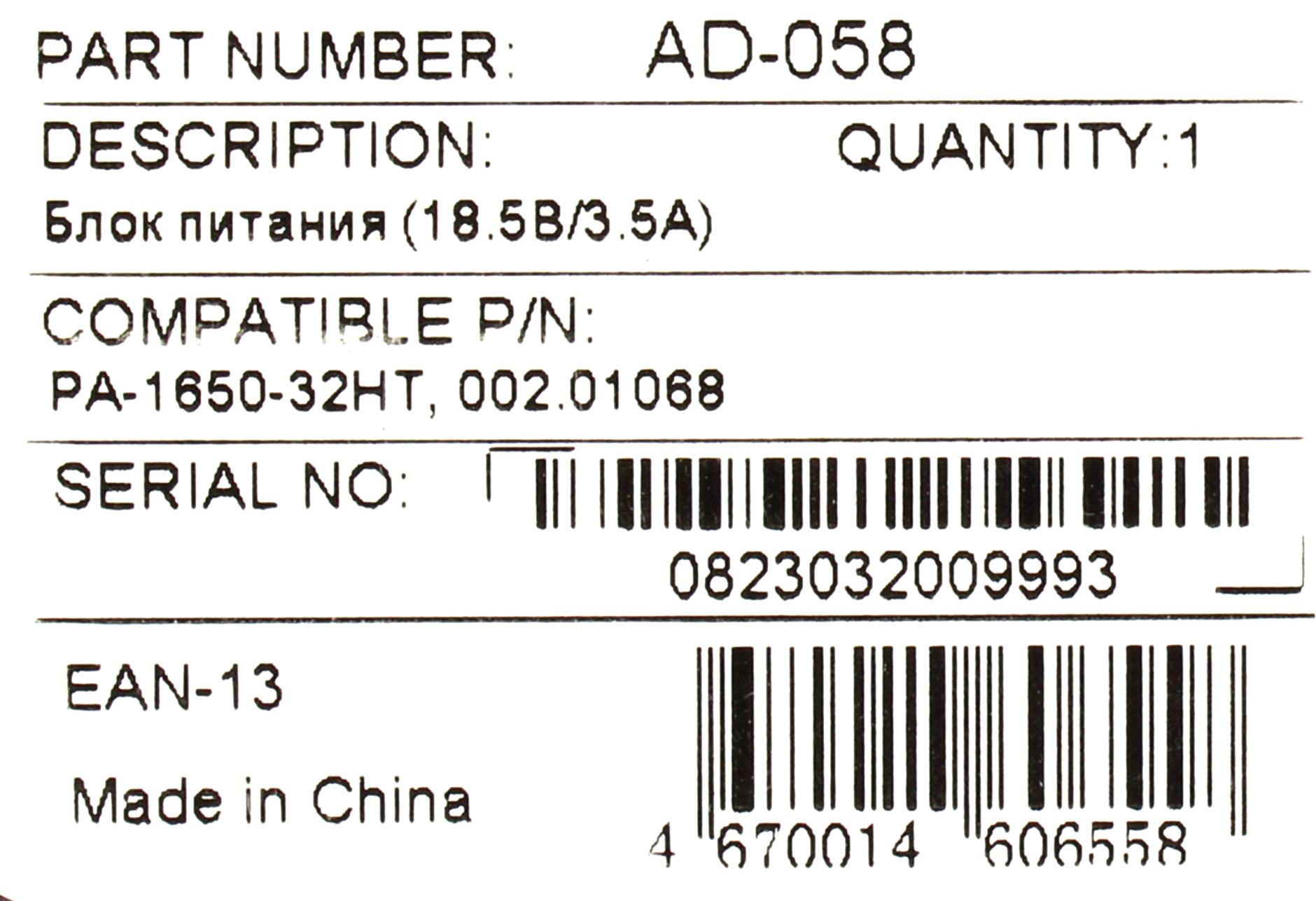 Блок питания Pitatel AD-058 для ноутбуков HP Compaq (18.5V 3.5A)