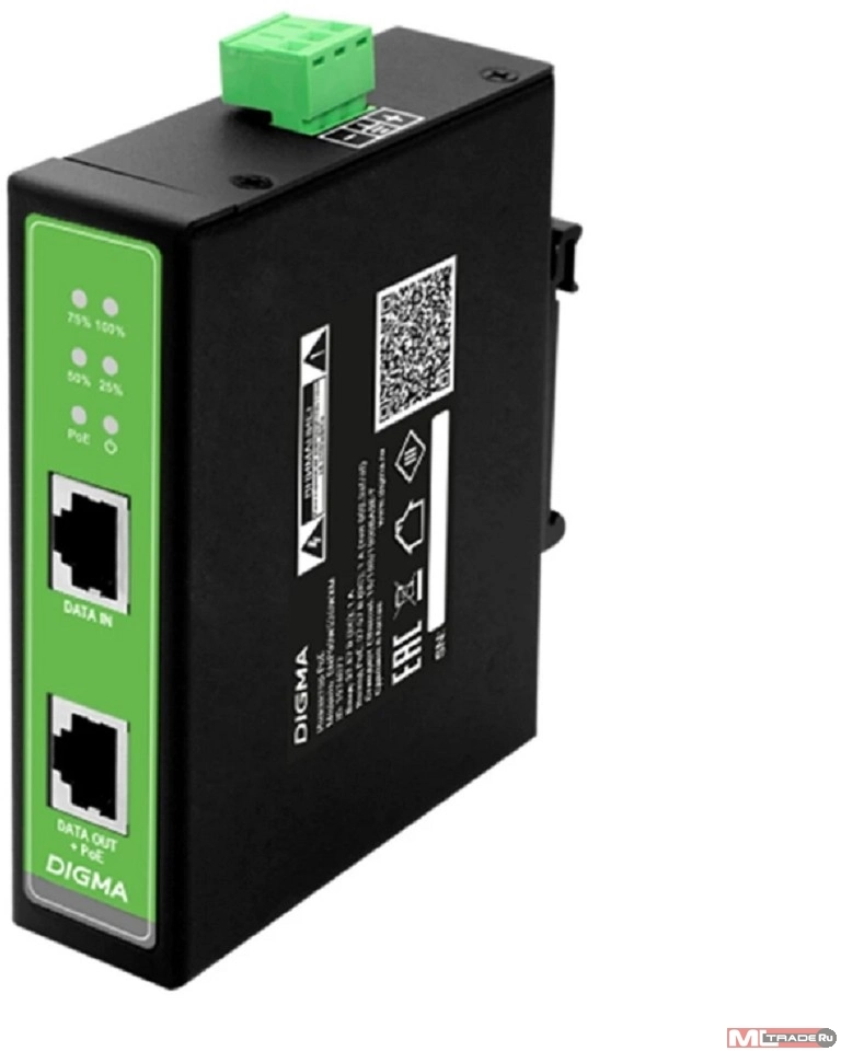 Инжектор PoE Digma DNP30W48GDXM 10/100/1000BASE-T 30Вт 37-57В(DC) | НИКС Екатеринбург