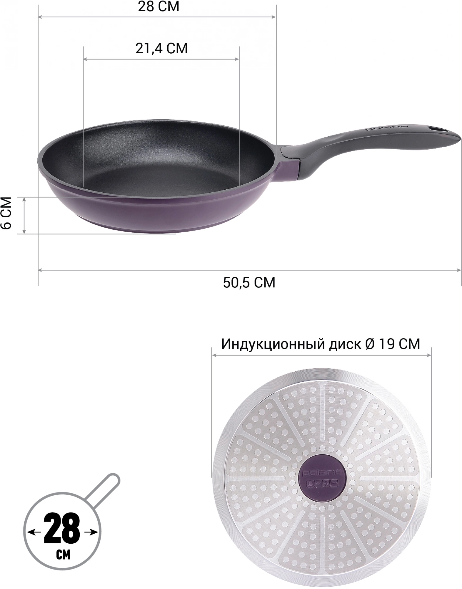 Сковорода Polaris Eco collection 28F круглая 28см покрытие: антипригарное ручка несъемная (без крышки) фиолетовый