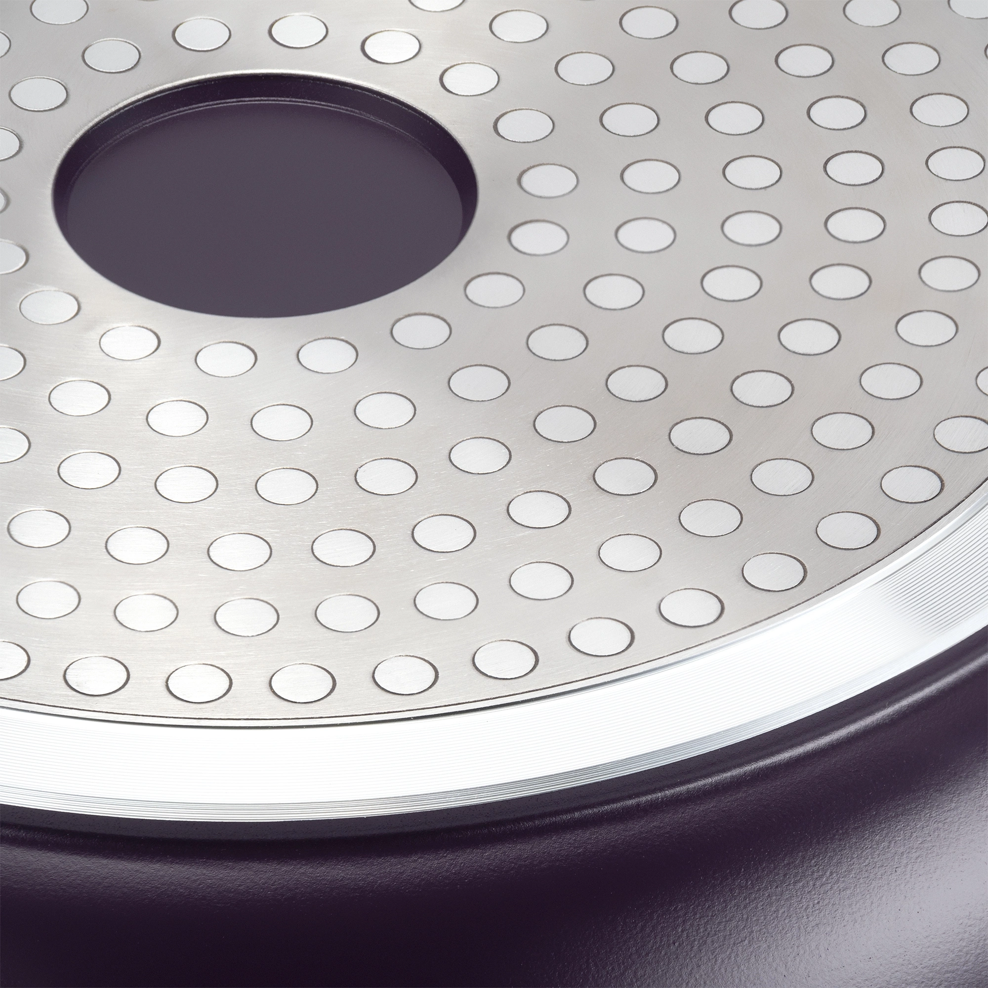 Подходит для всех типов плит, включая индукционные; бакелитовая ручка с покрытием "Soft-touch"; внутреннее высокопрочное 3х-слойное антипригарное покрытие ILAG обеспечивает непревзойденную стойкость к царапинам.