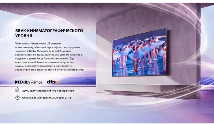 Телевизор QLED Hisense 75" 75U8HQ черный 4K Ultra HD 120Hz DVB-T DVB-T2 DVB-C DVB-S DVB-S2 USB WiFi Smart TV
