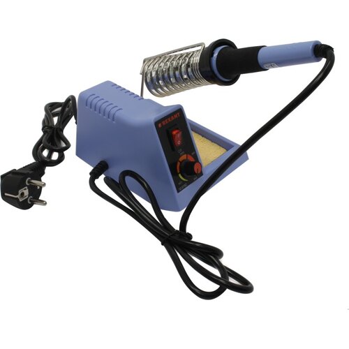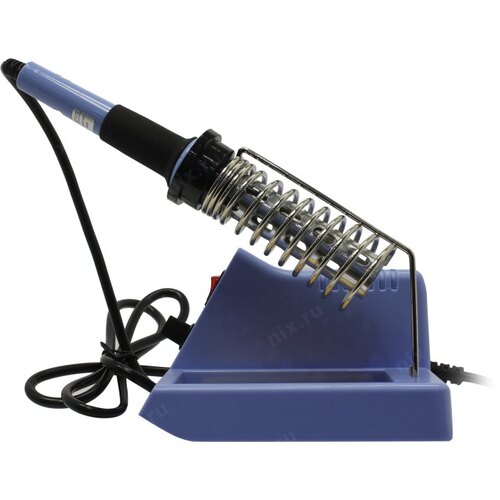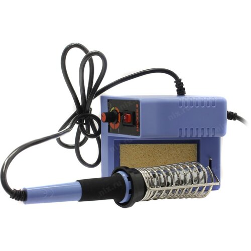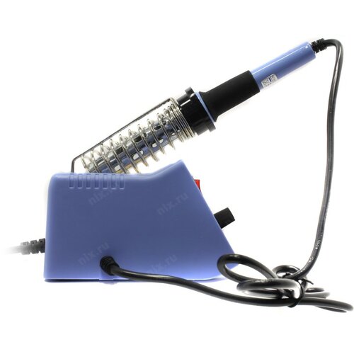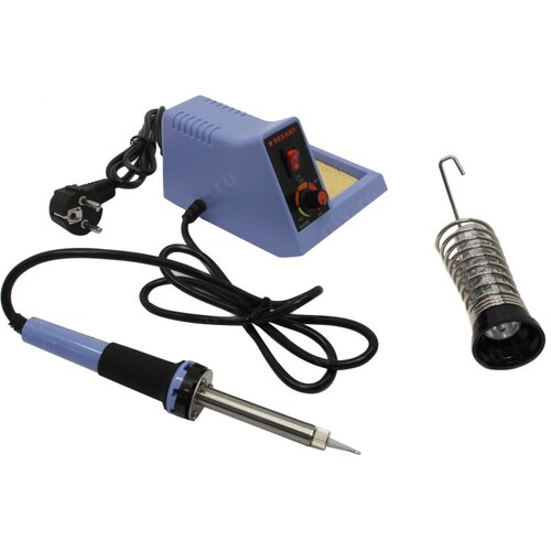 Станция комплектуется паяльником, держателем паяльника, губкой для очистки жала (в ложементе).