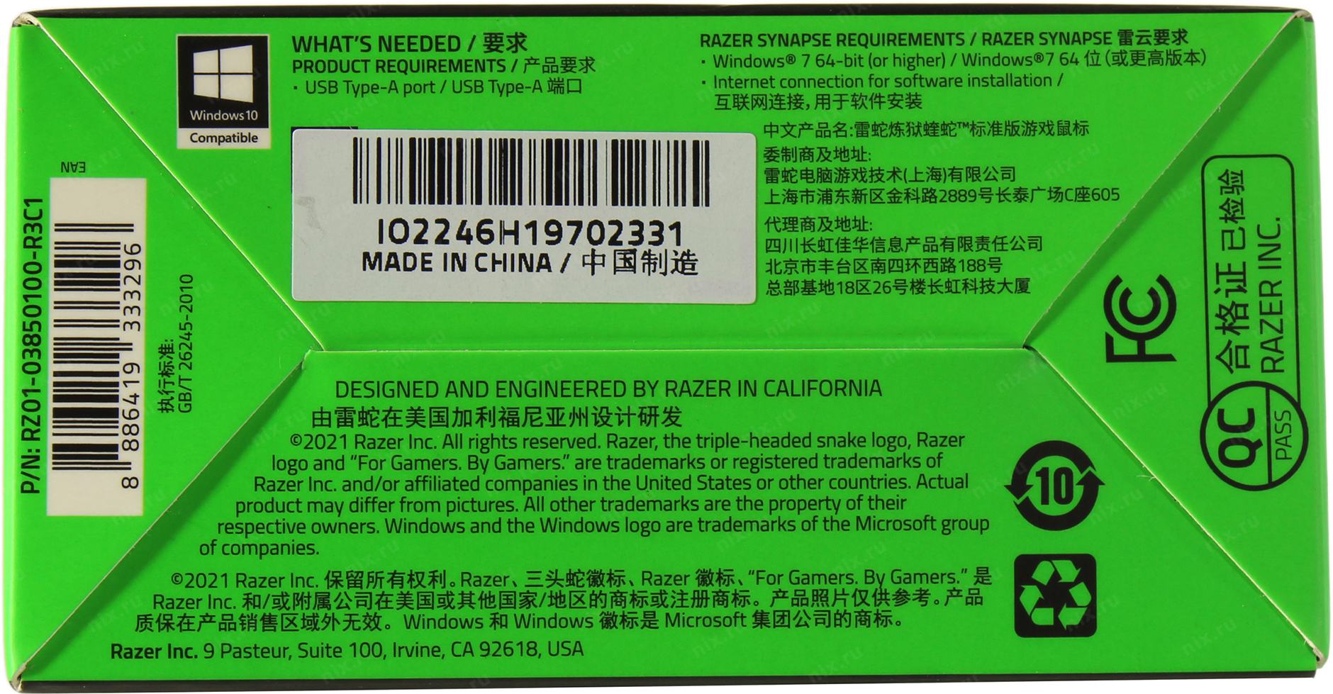 Размеры упаковки (измерено в никсе)