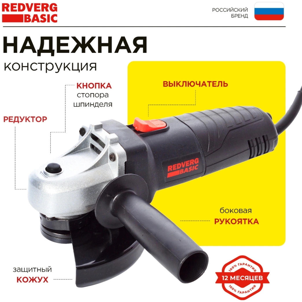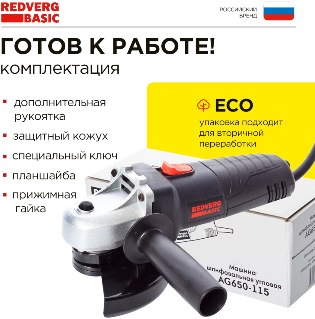 Углошлифовальная машина RedVerg AG650-115 650Вт 11000об/мин рез.шпин.:M14 d=115мм