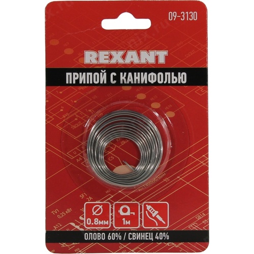 Rexant <09-3130> Припой с канифолью (SN60-Pb40 Flux 2.2%, d=0.8мм, 1м)