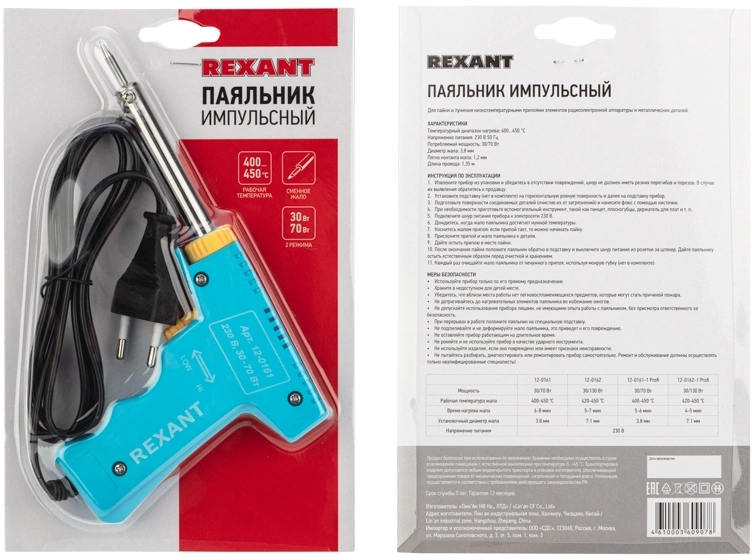 Паяльник Rexant 12-0161 импуль. 70Вт макс.t=450