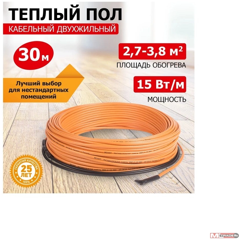 Rexant Теплый пол и терморегуляторы Rexant 51-0514-3 Теплый пол RND -30-450 (450Вт/ 30м/ S обогрева, м2: 2, 7-3, 8) (двух жильный)