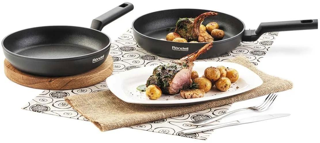 Ручки из бакелита с покрытием Soft Touch. Преимущества: Цельный индукционный диск - уникальная технология обеспечивает быстрый и равномерный нагрев посуды, долговечность использования и предотвращает окисление алюминия в ПММ. Наличие сливов позволяет контролировать объем жидкости во время тушения.