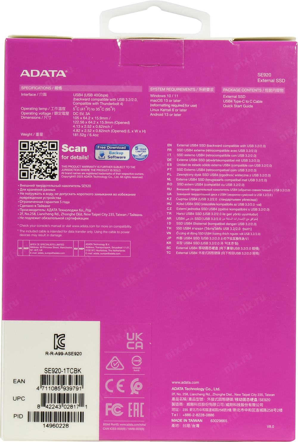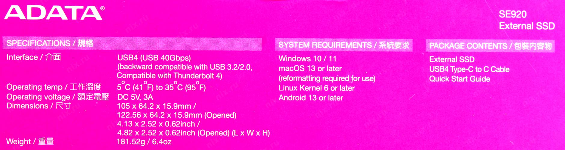 Накопитель SSD A-Data USB-C 4.0 1TB SE920-1TCBK SE920 2.5" черный